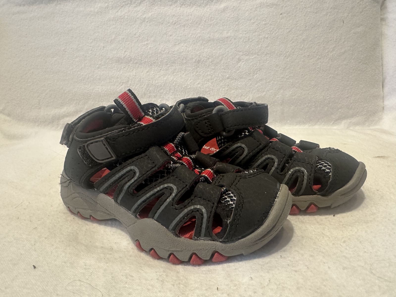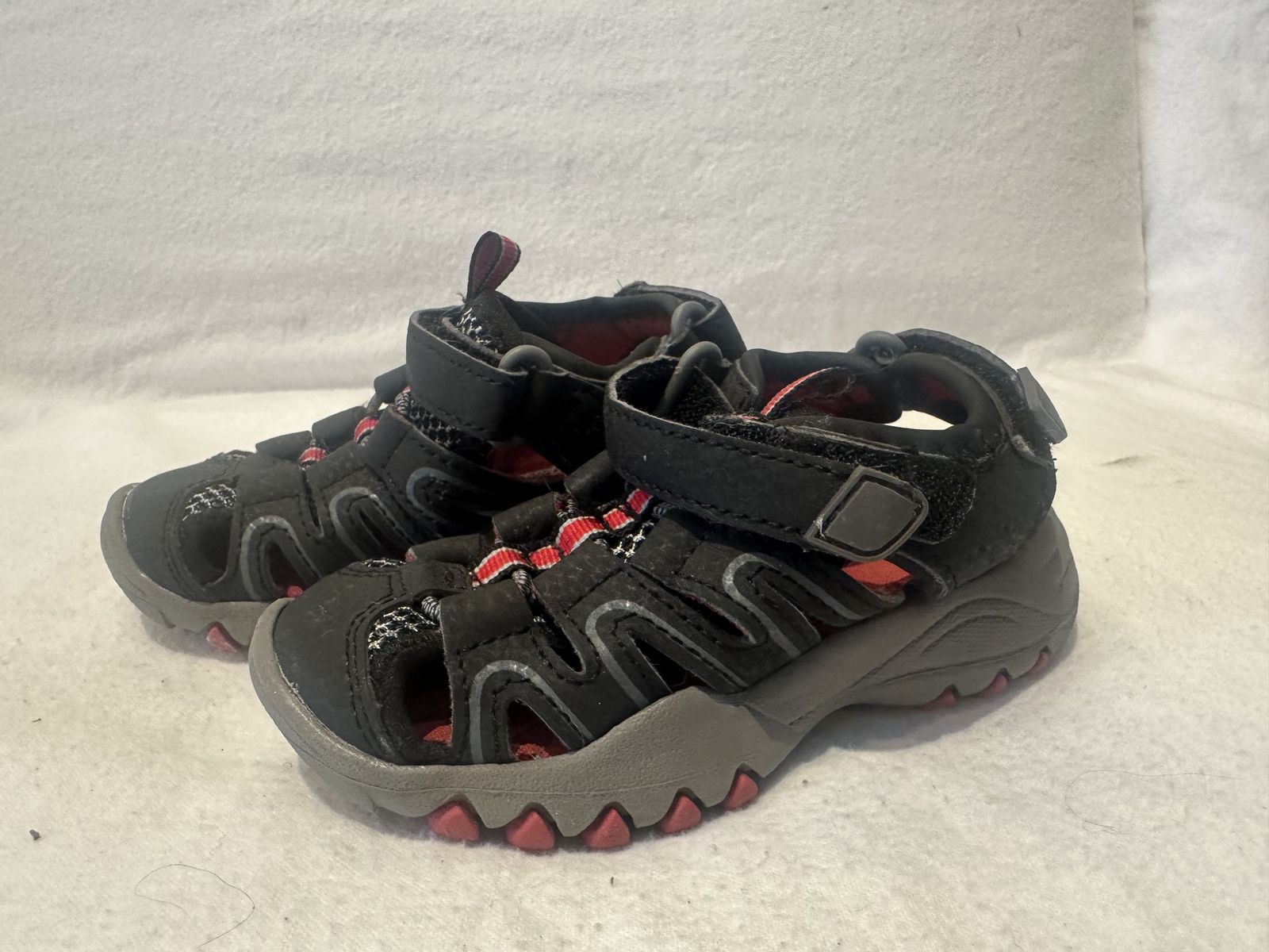Cat & Jack toddler size 6 black with red trim closed toe like new hiking sandals. See photos for details. I take cash or Venmo, but cash is preferred. Text is best. 801-201-4446. Check out my other ads for additional sizes and styles.