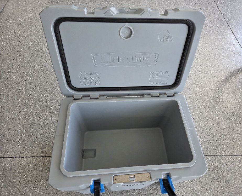 Lifetime 55 Quart High-performance cooler in excellent condition. Very durable, great for camping, hunting, fishing, tailgating or road trips. Lockable rubber latches, thick insulation for long ice retention, durable carrying handles, drain plug for easy cleaning, fits plenty of drinks and food. Cooler is clean and ready to use. No trades. Cash only.