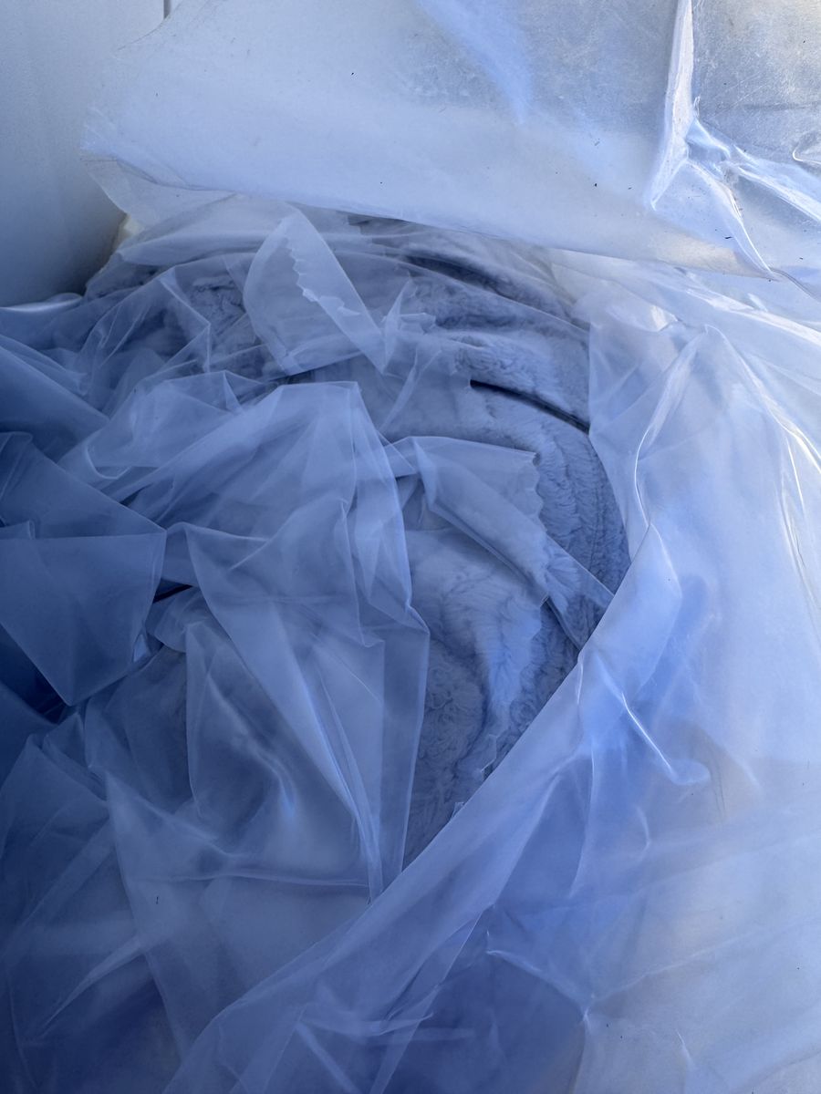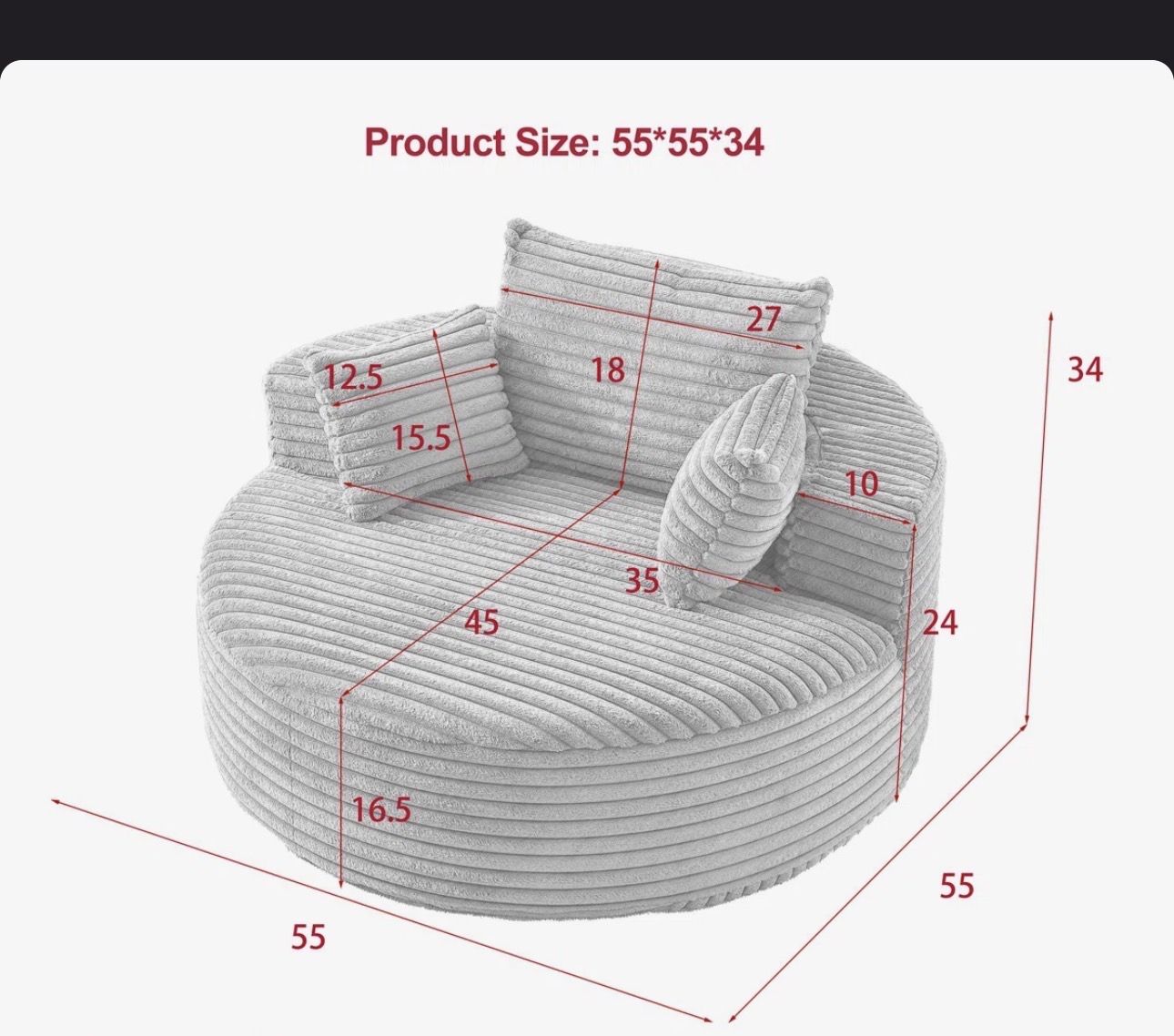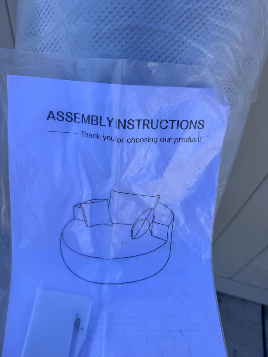 VenmoNew in plastic rolled up for easy transport, round memory foam lounge chair. Color light gray. Measurements in pictures.
