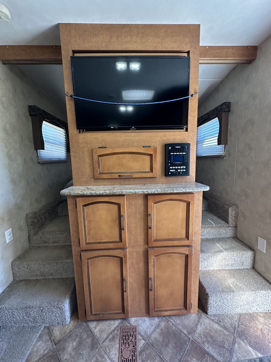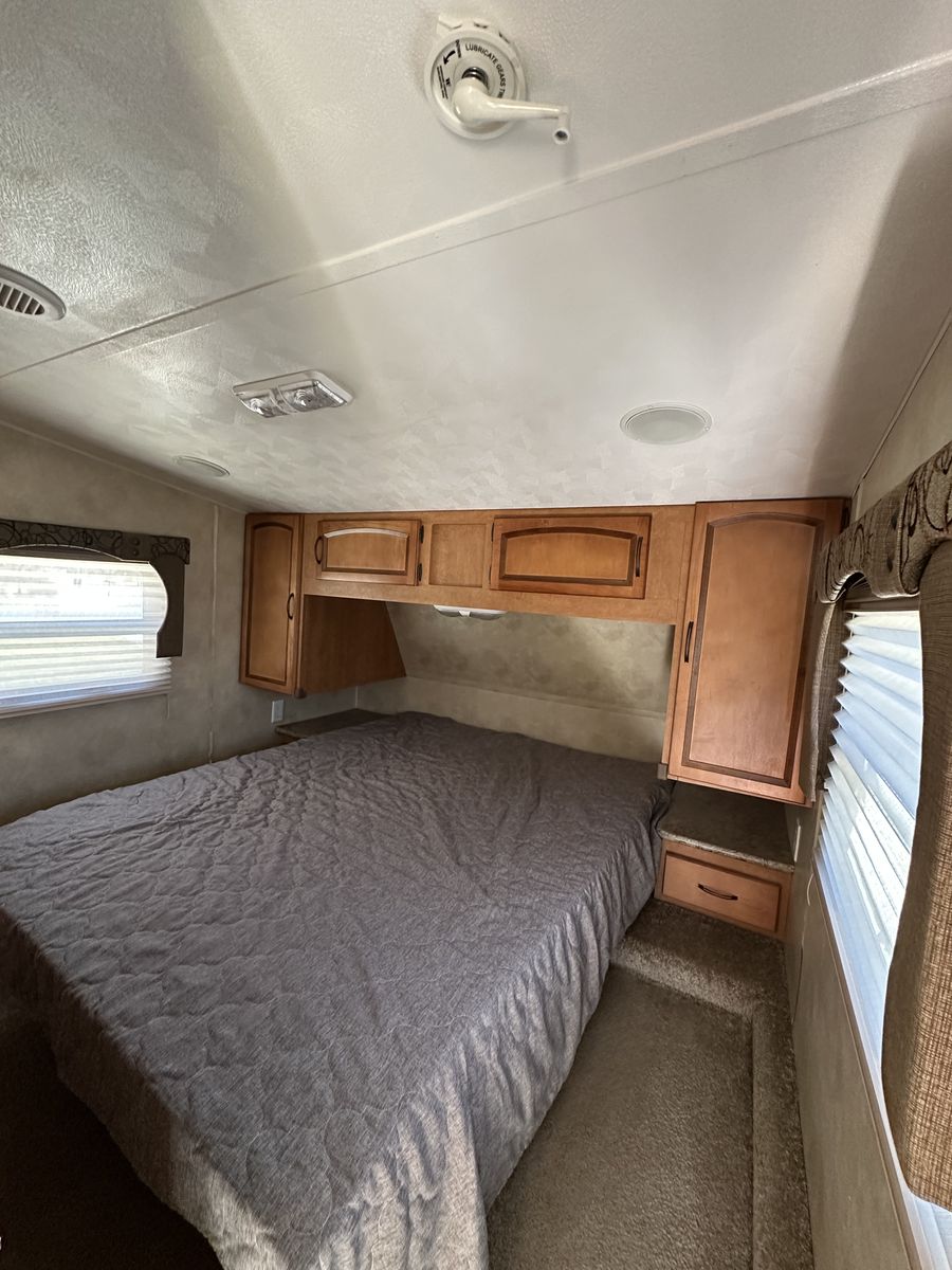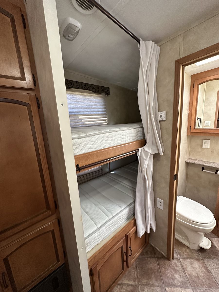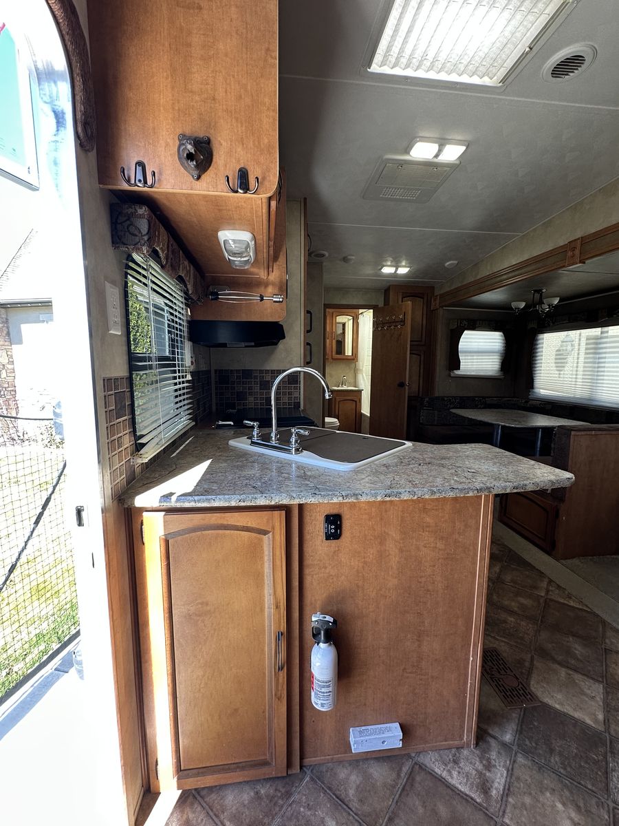 Nice Floorplan -Stabilizing Jacks -Power Awning with LED lights -LED lighting inside -Slide Out -Front Queen Bed -U Shaped Dinette -Rear Bunks -Bathroom with toilet/shower -Fridge/Freezer -Stove/Oven/Microwave -Couch that folds into a bed -Ducted A/C with Wall Controls -Full Bathroom with Fan -Furnace -Puma den for storage under back bunk -Overall Length 28’ -Dry Weight 7,200 -Hitch Weight 1,391