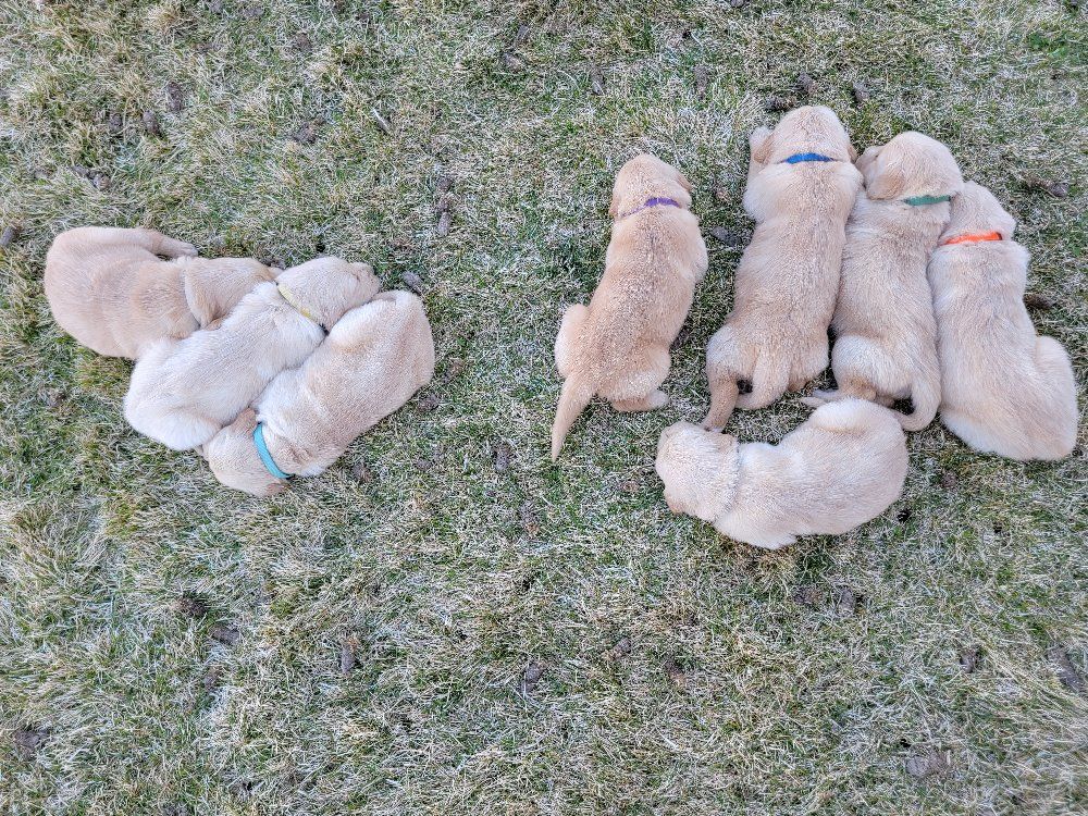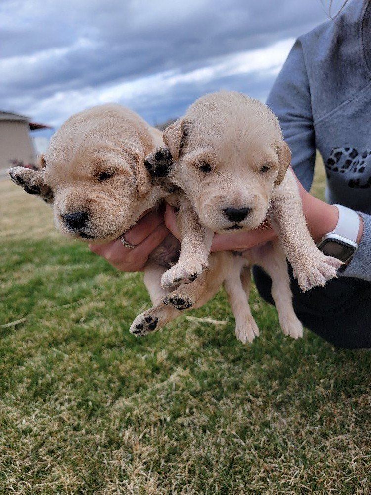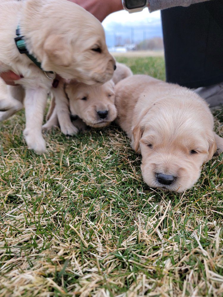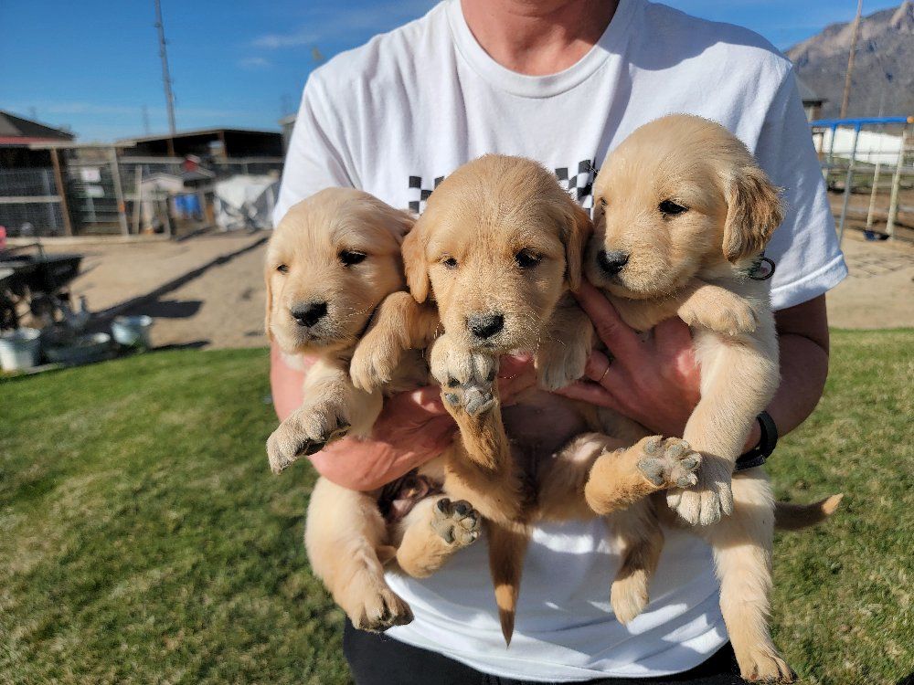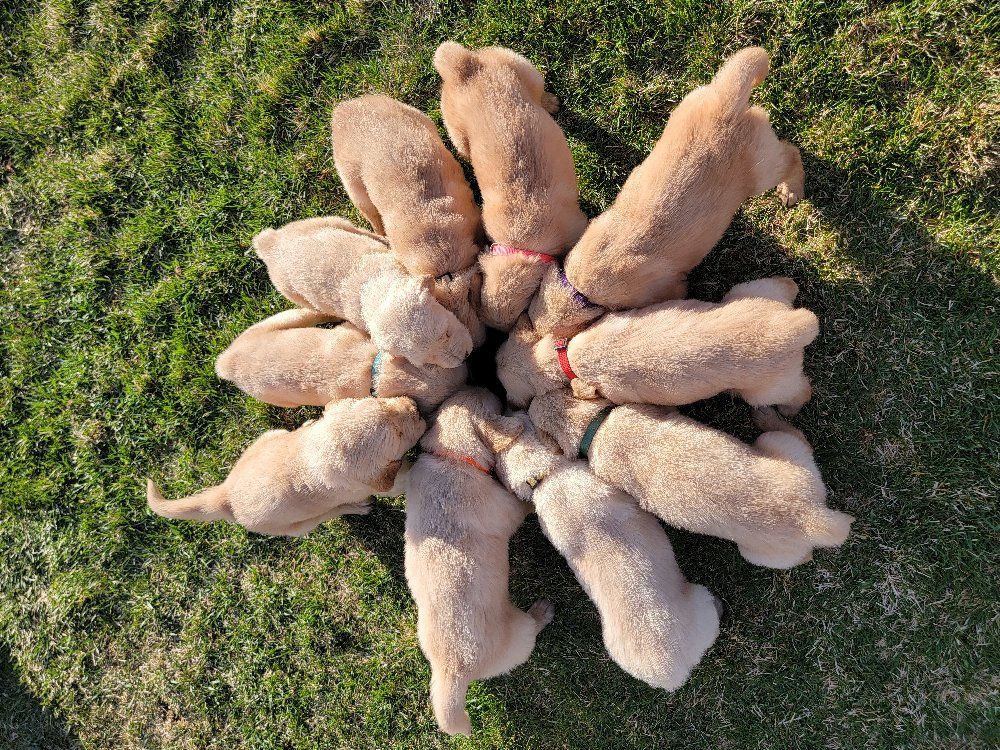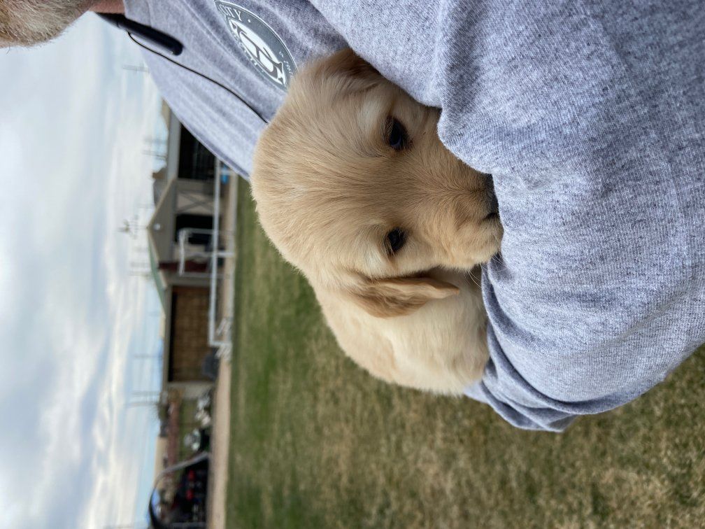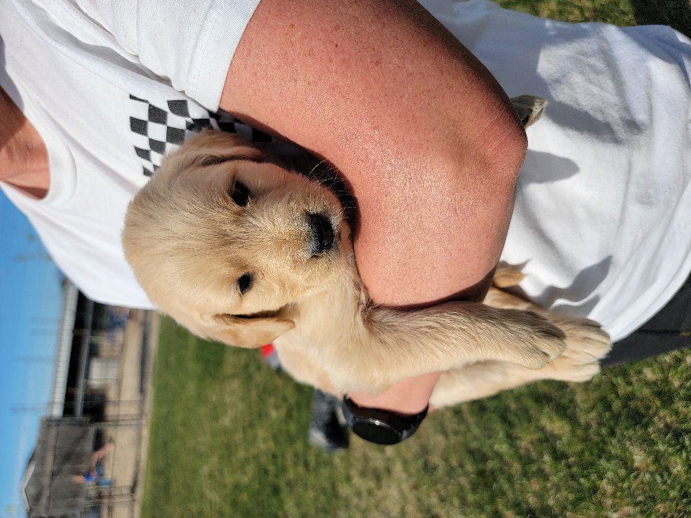 VenmoWe have a beautiful litter of 10 happy, healthy puppies. 4 males and 6 females. We have light and darker colors. They have shorter snouts and blocky heads. They are starting to get their personalities! You can't go wrong with getting a Golden Retriever. They are intelligent, and a friendly dog breed known for its gentle, eager-to-please nature, making it an excellent family pet and hunting companion. Their affectionate and patient disposition makes them great with children and strangers. We love Retrievers. We have been breeding them for 5 years. We bred German Shepherds before that and my parents bred Scottish Terriers when I was growing up, so it has been apart of my life for a long time and I really enjoy placing puppies in their forever homes with their families. We are passionate about what we do.