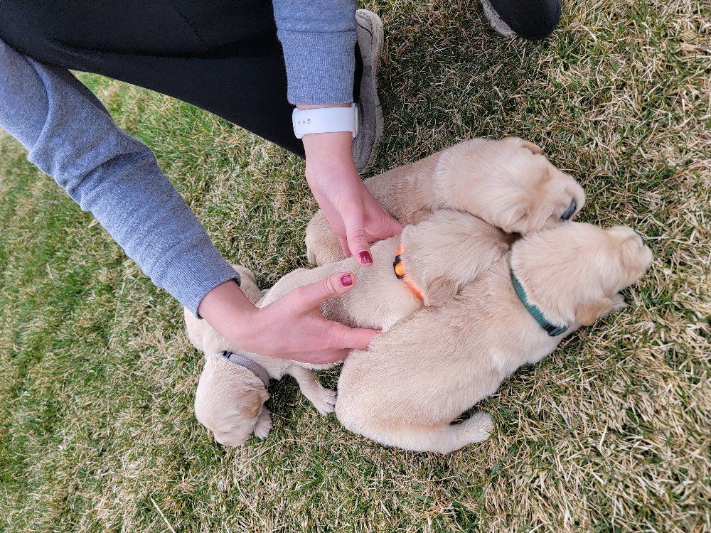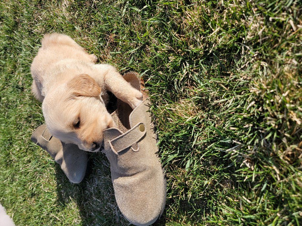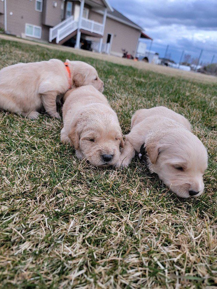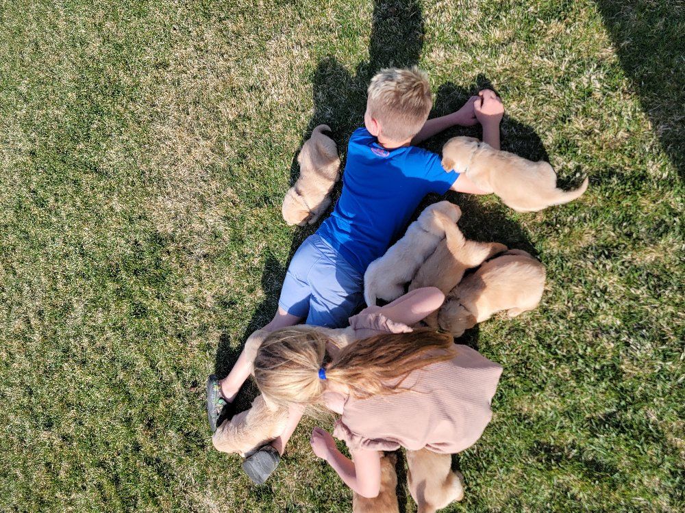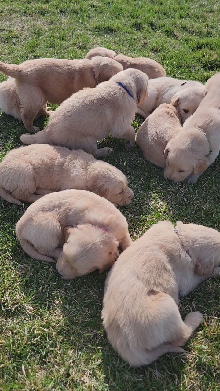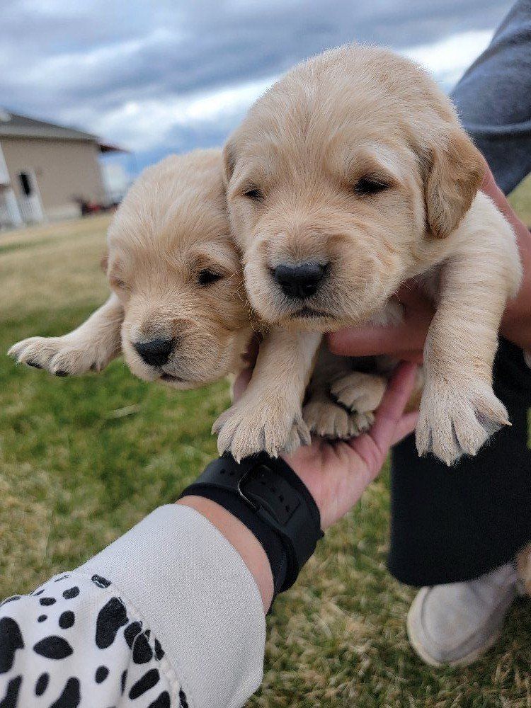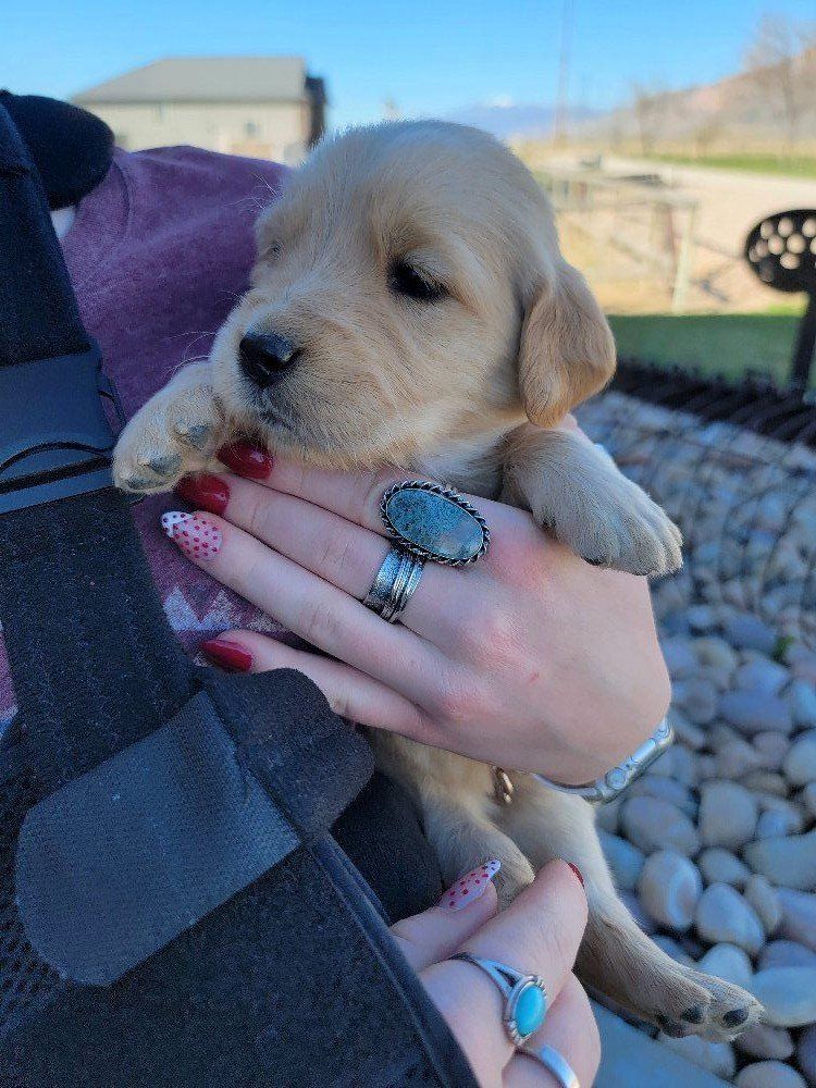 VenmoWe have a beautiful litter of 10 happy, healthy puppies. 4 males and 6 females. We have light and darker colors. They have shorter snouts and blocky heads. They are starting to get their personalities! You can't go wrong with getting a Golden Retriever. They are intelligent, and a friendly dog breed known for its gentle, eager-to-please nature, making it an excellent family pet and hunting companion. Their affectionate and patient disposition makes them great with children and strangers. We love Retrievers. We have been breeding them for 5 years. We bred German Shepherds before that and my parents bred Scottish Terriers when I was growing up, so it has been apart of my life for a long time and I really enjoy placing puppies in their forever homes with their families. We are passionate about what we do.