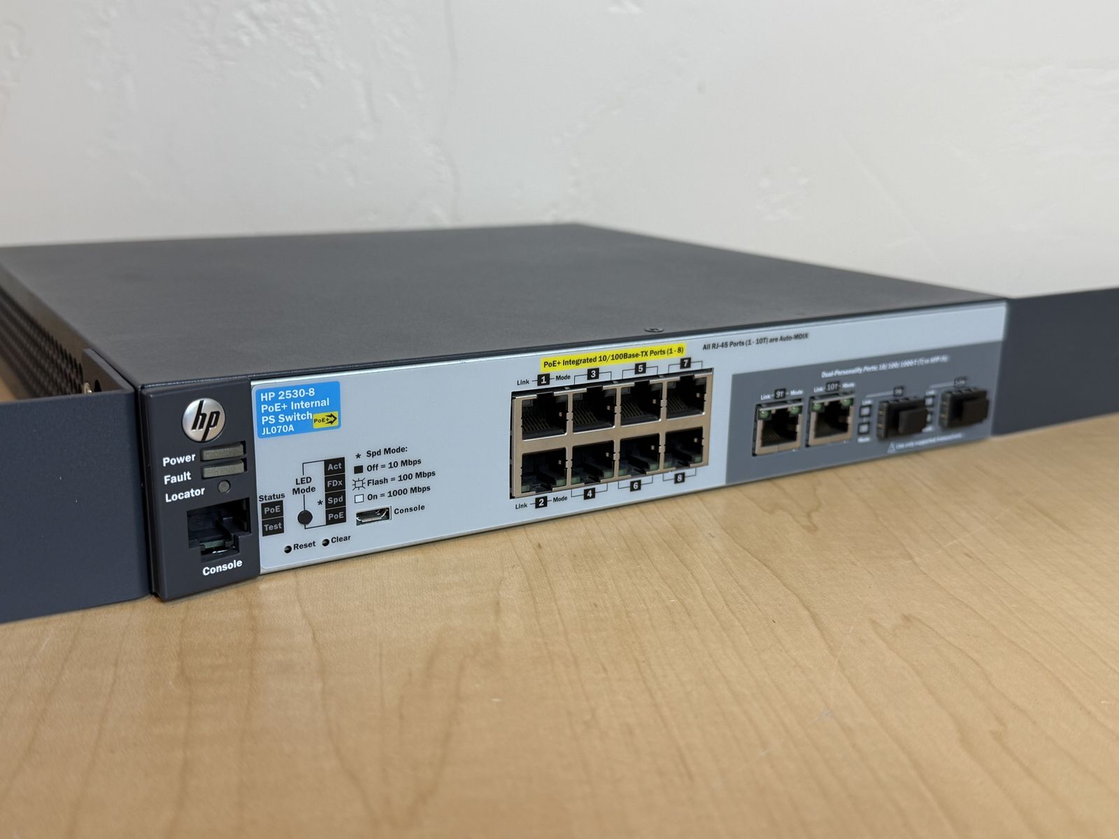 2 Dual-Personality ports; Each port can be used as either an RJ-45 10/100/1000 port (IEEE 802.3 type 10Base-T; IEEE 802.3u type 100Base-Tx; IEEE 802.3ab 1000Base-T GbE) or as a SFP slot (For use with SFP transceivers) ports. Pulled from a working network to upgrade.