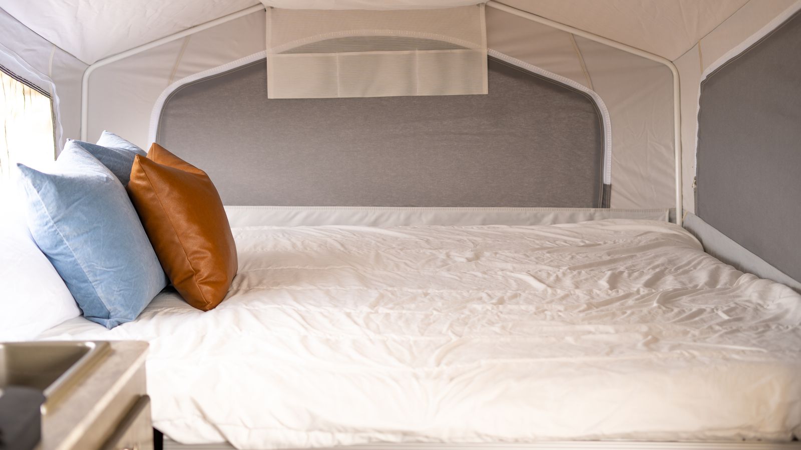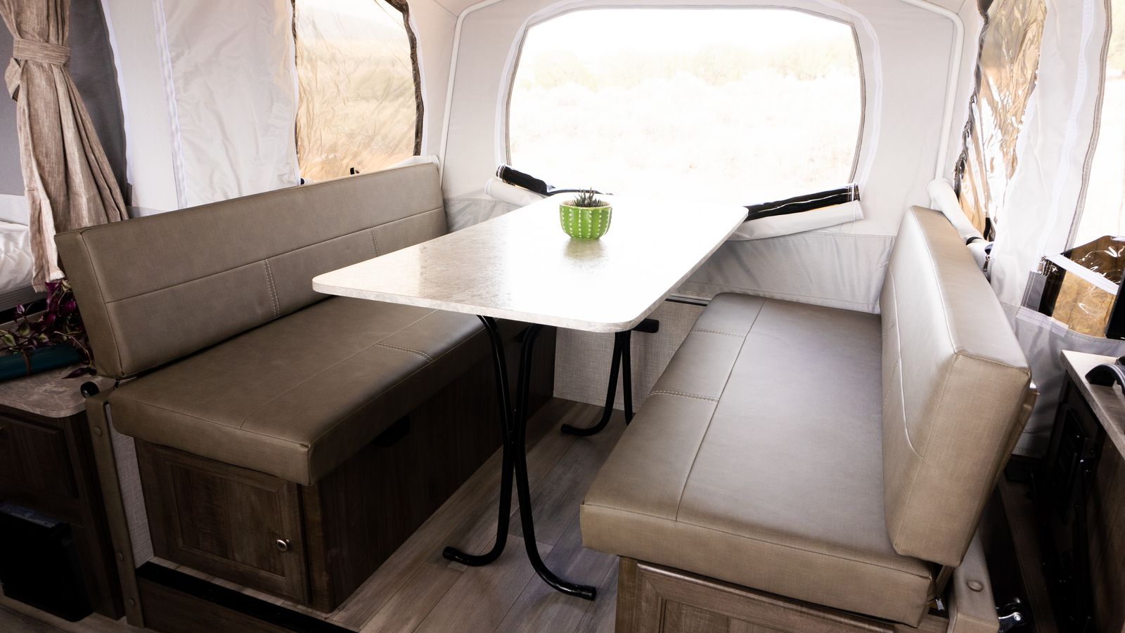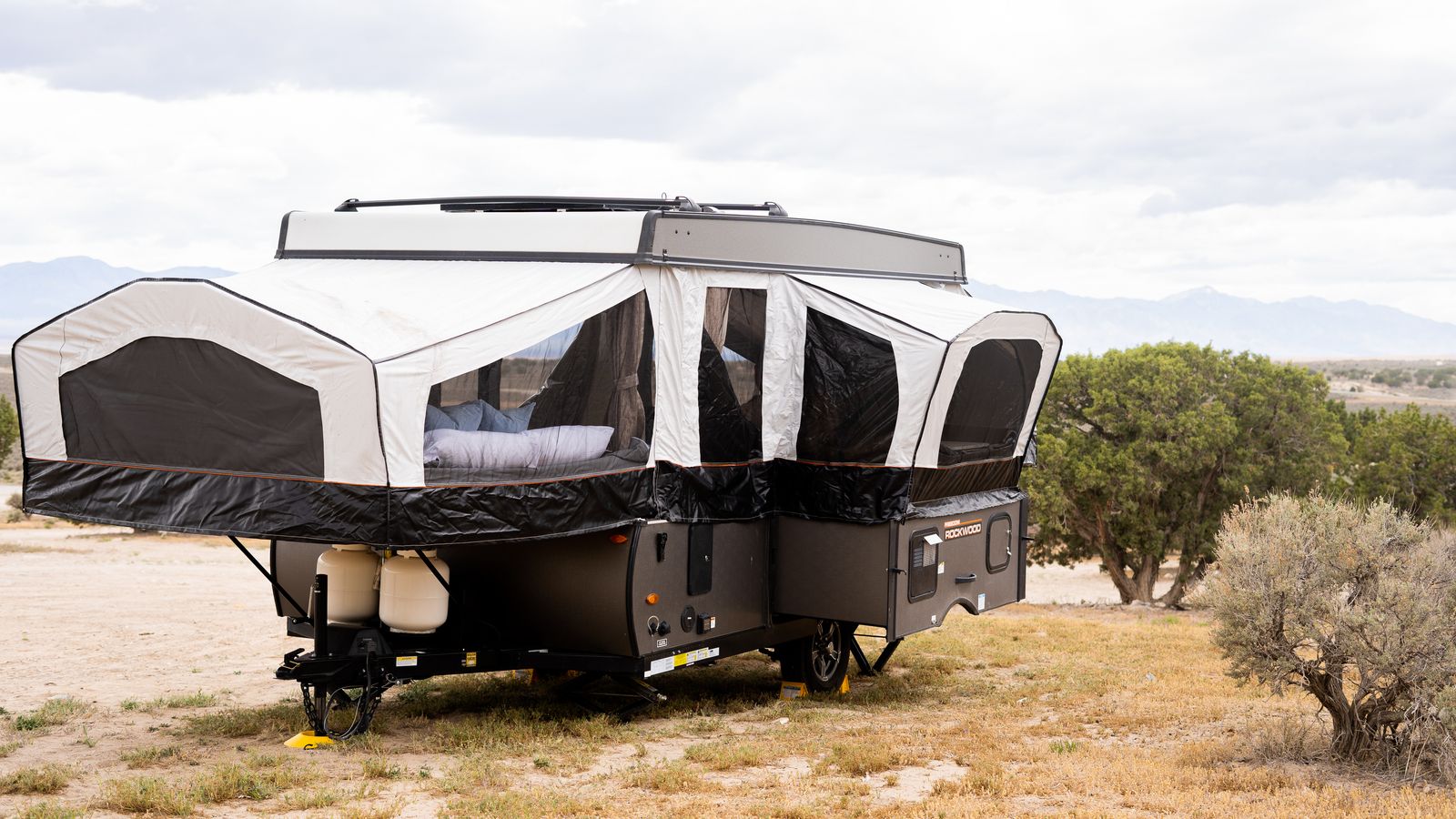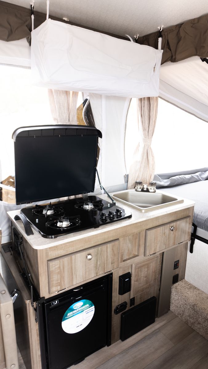 The Rockwood 2318G tent trailer is a lightweight, easy-to-tow pop-up camper that’s perfect for family camping trips. It features a front king bed, rear queen bed, and a slide-out dinette that provides extra living space and can sleep additional campers. Inside you’ll find a sink, stove, storage cabinets, and plenty of room to relax once it’s set up. Compact for towing but spacious when opened, the 2318G is a great option for anyone wanting comfortable camping without towing a large trailer.