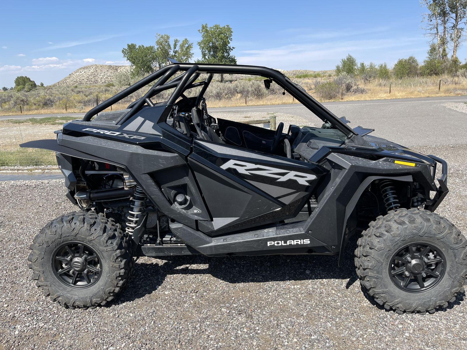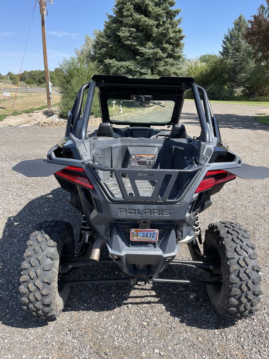 Has a full front glass windshield, front bumper, rear bed enclosure, metal roof, mud buster fender flares, lower door inserts, door storage bags.