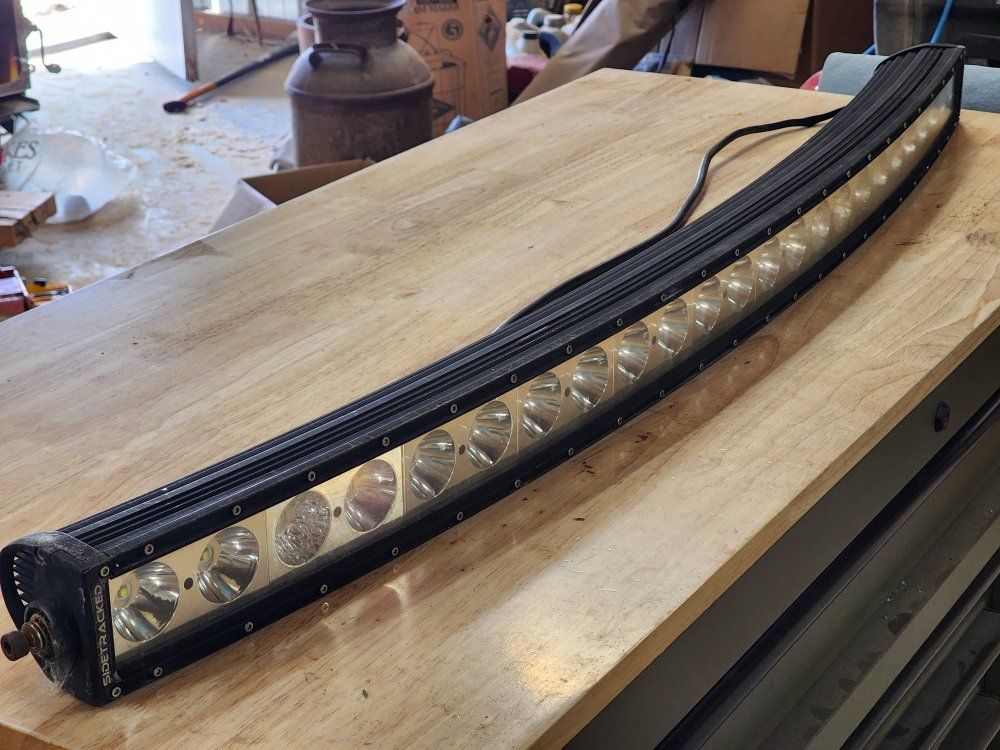 PayPal'Sidetracked' 50" curved LED lightbar. Single row. I've abused it for several years, and recently got a new bar. All the chips still work, but the coating on about half the reflectors is starting to bubble.
