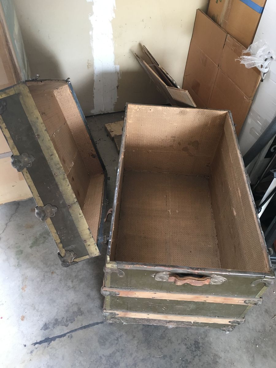 VenmoVintage military (I think) travel trunk. 34”x20”x22”high. It’s seen lots of miles and is pretty tired. Leather straps are dried and some missing entirely. Hinge broken, lid comes right off and it has it’s share of dings (each one probably a great story). I don’t want to trash it. I hope someone could take it on as a labor of love craft project and give it a new life.