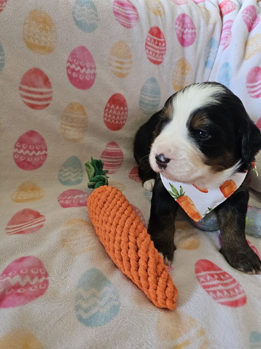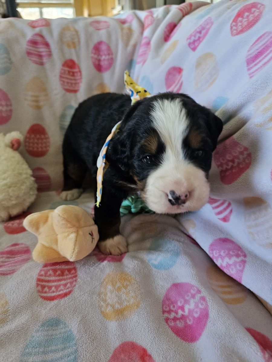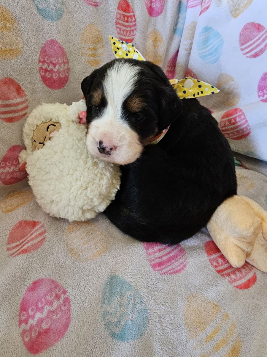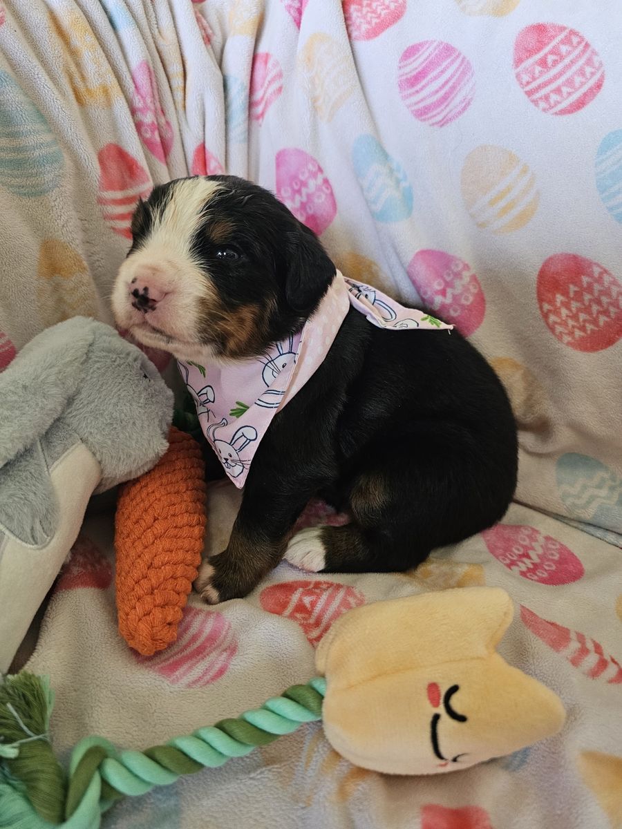We have three purebred female Bernese Mountain Dog puppies available from a litter of seven.