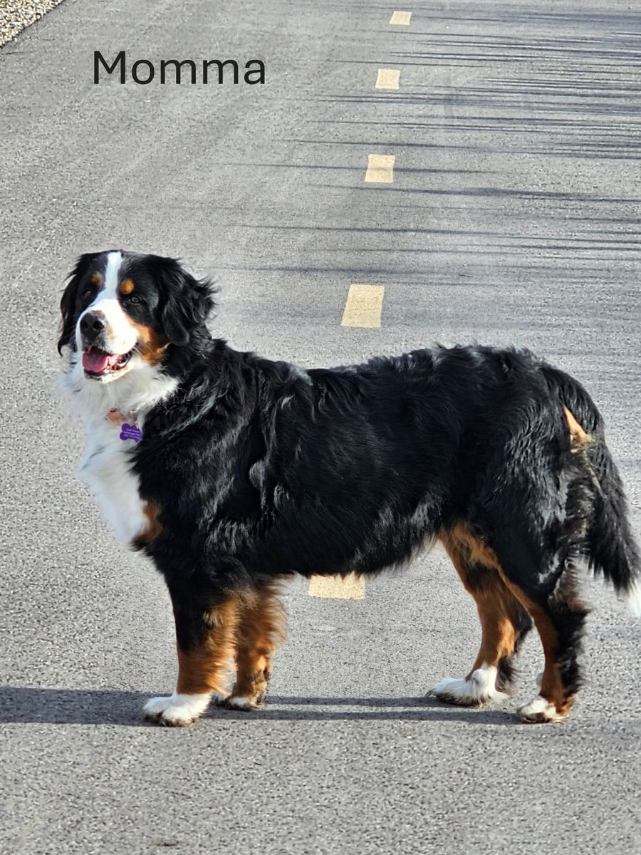 ️ Temperament The mom is an exceptional Bernese Mountain Dog—loyal, calm, and deeply bonded to our family. She stays close when we’re out and about, is naturally protective without being reactive, and is wonderful with children and other pets. Her temperament shines through in this litter, and we expect these puppies to grow into the same steady, loving companions.