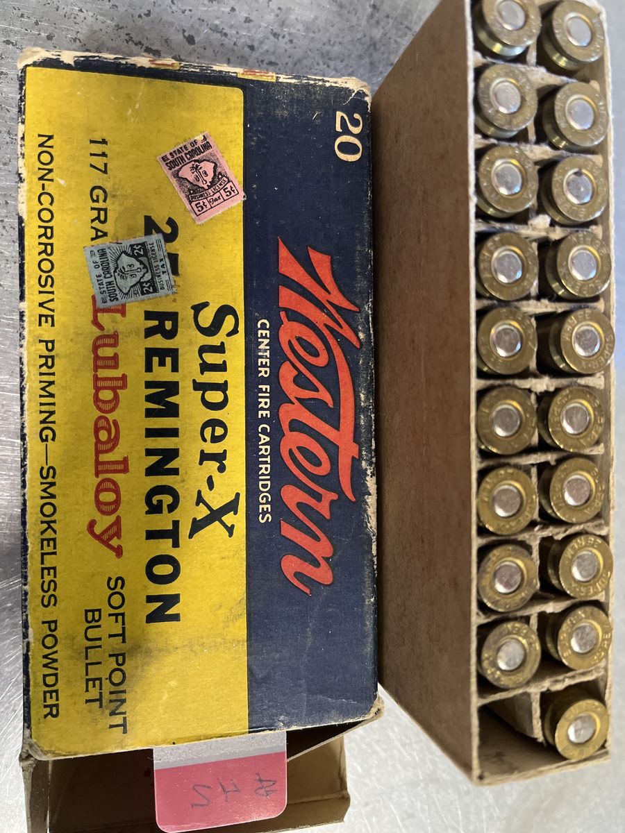 19 rounds of factory loaded Western Super-X. Super cool box with 2 South Carolina Tax Stamps. Business license Tax. 2 and 5 cents. $45-10%=$40.50. Please see my other ads. Thanks, Joe.