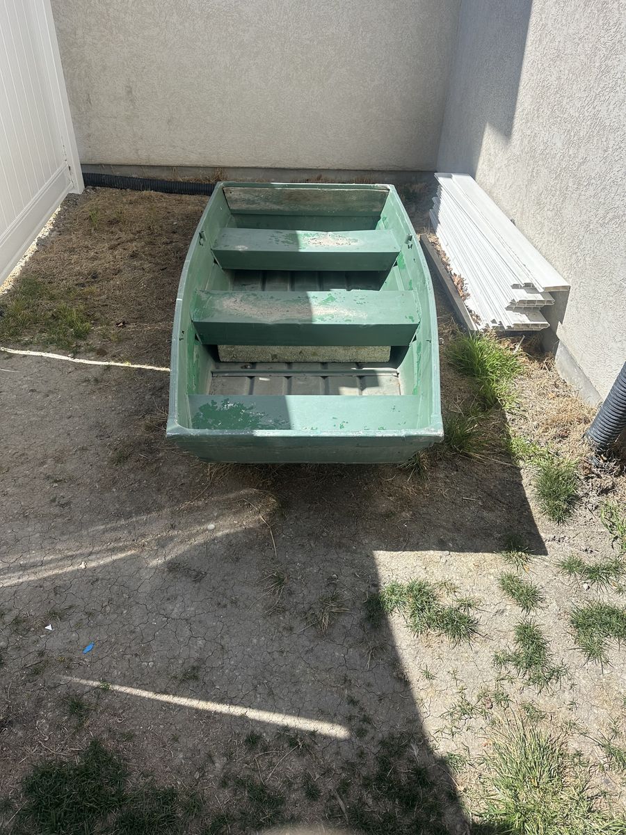 12 foot long. Used to hook up a trolling motor and go fishing around the mountain lakes. Bought a big boat and haven’t used this in a long time. No leaks. Looks better in person.