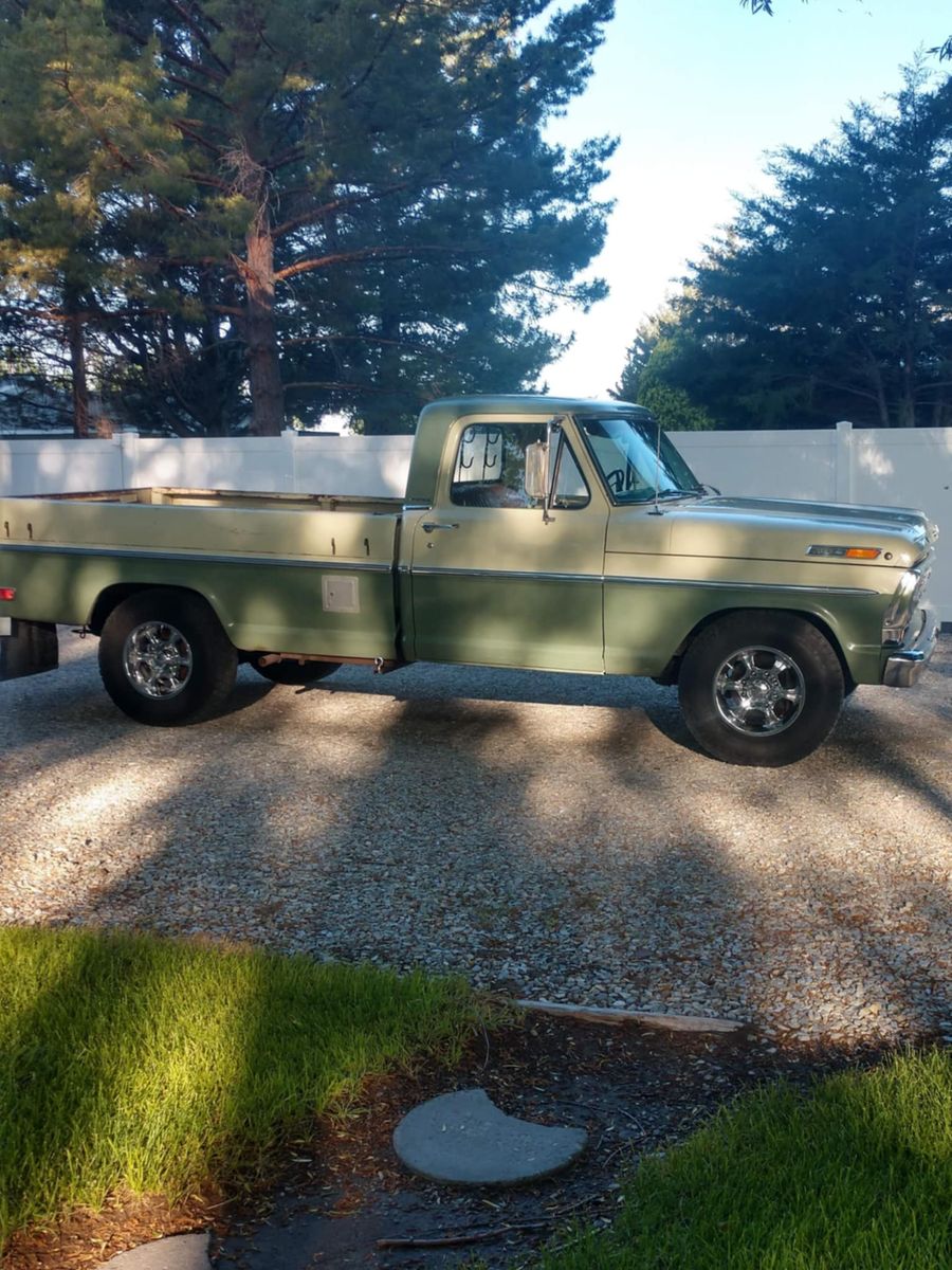 PayPal1969 long bed F100 pickup converted to full 1 ton. Has disc brakes power brakes power steering 360 overhauled to a 390 with a four- barrel manifold and carburetor. Truck is in immaculate condition original paint no body work ever. Dad was really fussy. Truck has never been stored outside always inside. Dad bought this truck brand new in 1969. Truck comes with two extra sets of wheels and tires one set just Street one set mudder lugs in the back Street in the front also has sideboards for the bed. No lowball offers. $15,000
