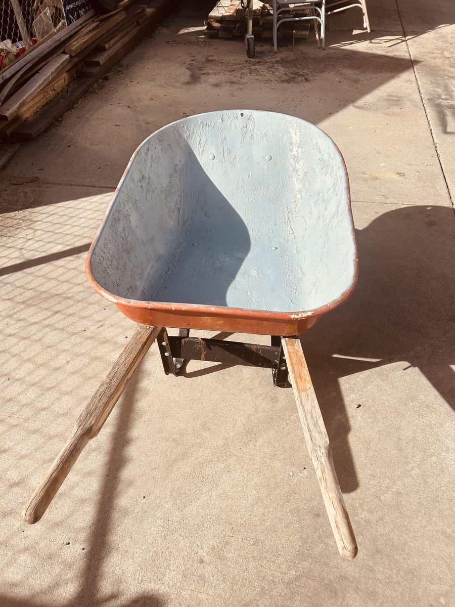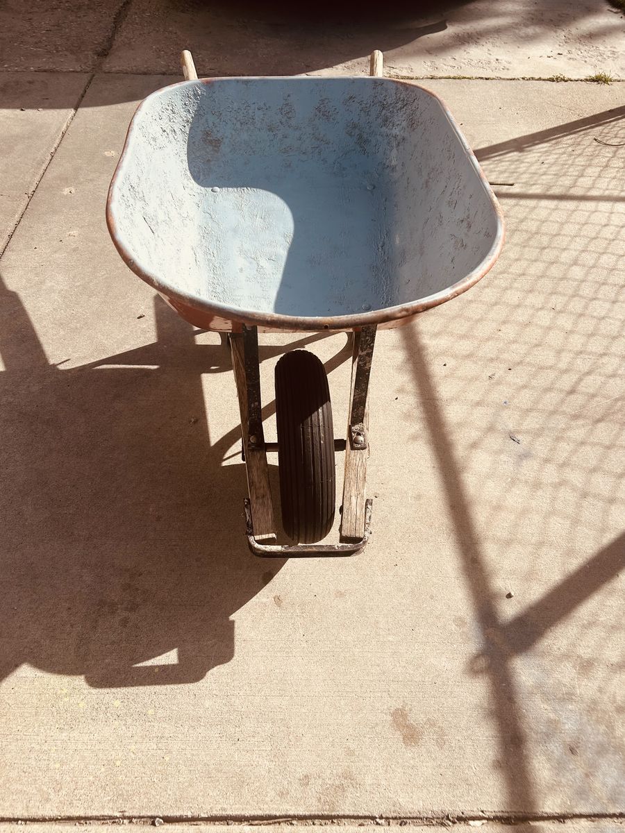 Venmo6 cubic ft wheelbarrow. Very sturdy. Tire is good. Heavy duty handles. No holes in the pan Very little use. Has a little left over cement residue. $85 OBO No codes