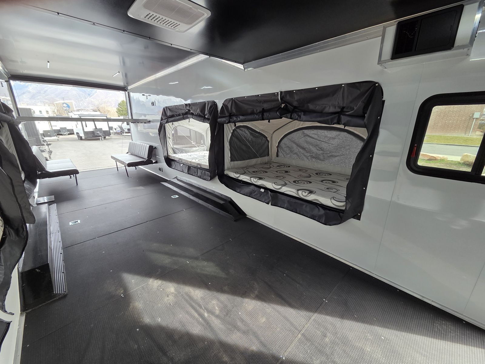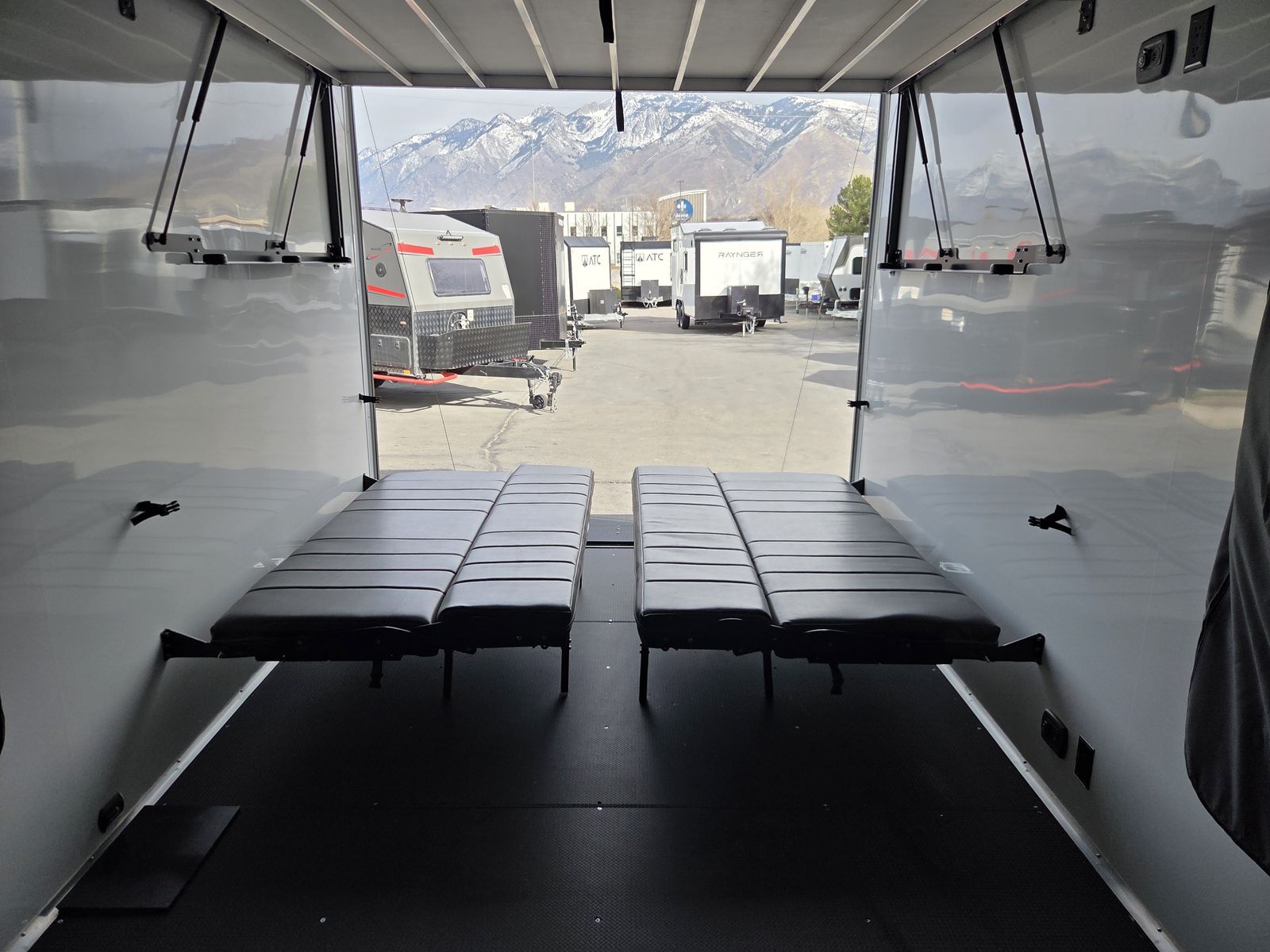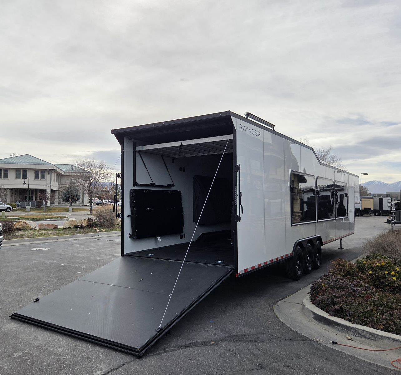 FREE NATIONWIDE SHIPPING!!! $572 A MONTH WITH ZERO DOWN WITH OUR SPECIAL LOCAL CREDIT UNION PARTNER!!! NO PRE-PAYMENT PENALTIES!!! 21,000# GVWR w/Triple 7,000# Torsion Axles!!! 32 Foot Garage, fits any 2 of the largest Side by Sides on the market!!! 82 Inch width between the interior wheel wells, 84 inch rear entry height!!! 5x Pop Out Tents, Sleeps 16 People!!! NEW GOOSENECK TOY HAULER MODEL!!! GO WHERE OTHERS ONLY DREAM!!! RAYNGER PREMIUM GOOSENECK TOY HAULER CAMPER!!! Do you want a Bathroom/Kitchen? Ask our Sales Staff about our NEW optional "FBHK" set up (FULL BATHROOM/SHOWER/KITHCHEN AREA) FULLY INSULATED!!! .080 PolyCor Aluminum Exterior!! 13,500 BTU A/C with Wall Mounted Thermostat!!! STOW AND GO QUEEN BED!!! 84 Inch Rear Entry Height!!! 2x Power Fan Ventilated!!! Water Resistant Poly Bead Flooring (Same Used in Snowmobile Trailers) EXTRA TOUGH!!! Patio Conversion Jacks!!! 4 Foot LED Party Lights for nighttime fun!!! Marine Battery with Box. Solar Prepped!!! 2x Rollover/Jackknife Sofas under the Stow and Go Bed! Looking for other options!?!? Just ask, we install!!!! You HAVE to come see this BEAST in person, it will amaze you!!!