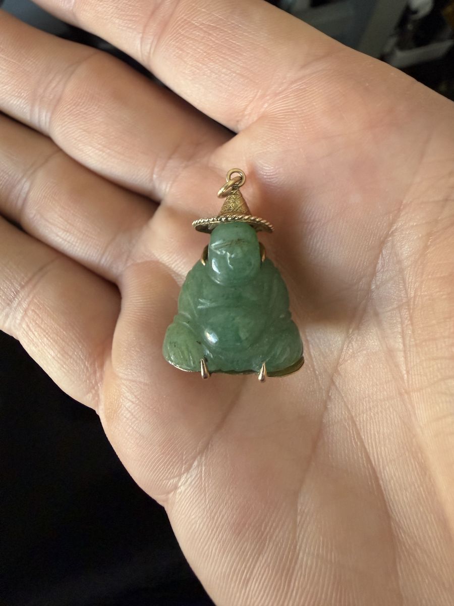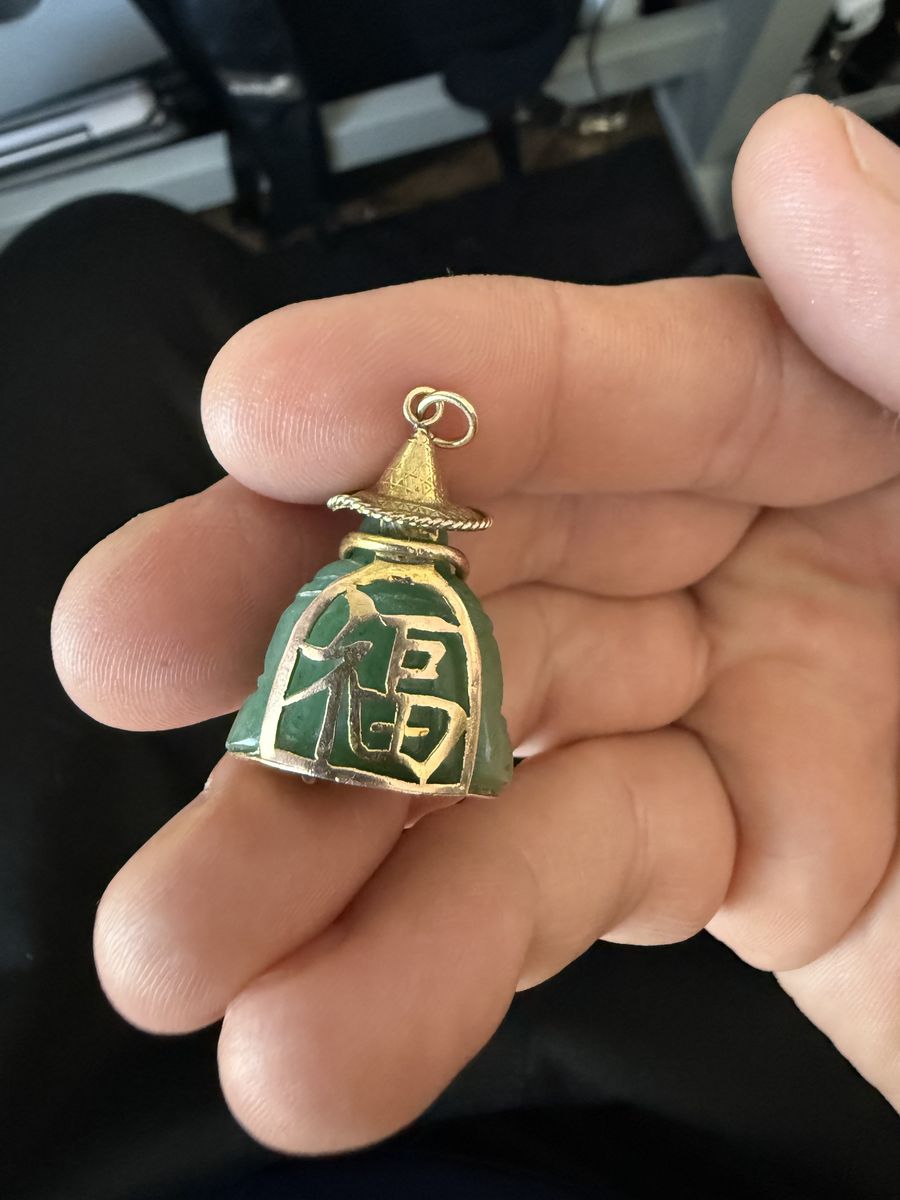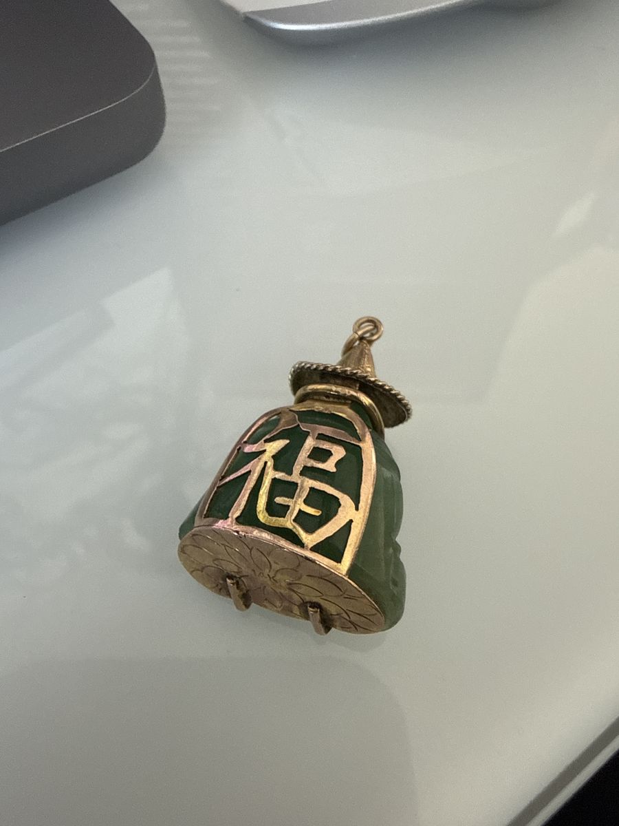 VenmoThis is a cool mid1900’s jade pendant, it has a case holding it that is 14k gold. The Chinese meaning behind the text on the back is below. 福 (Fu) means:\