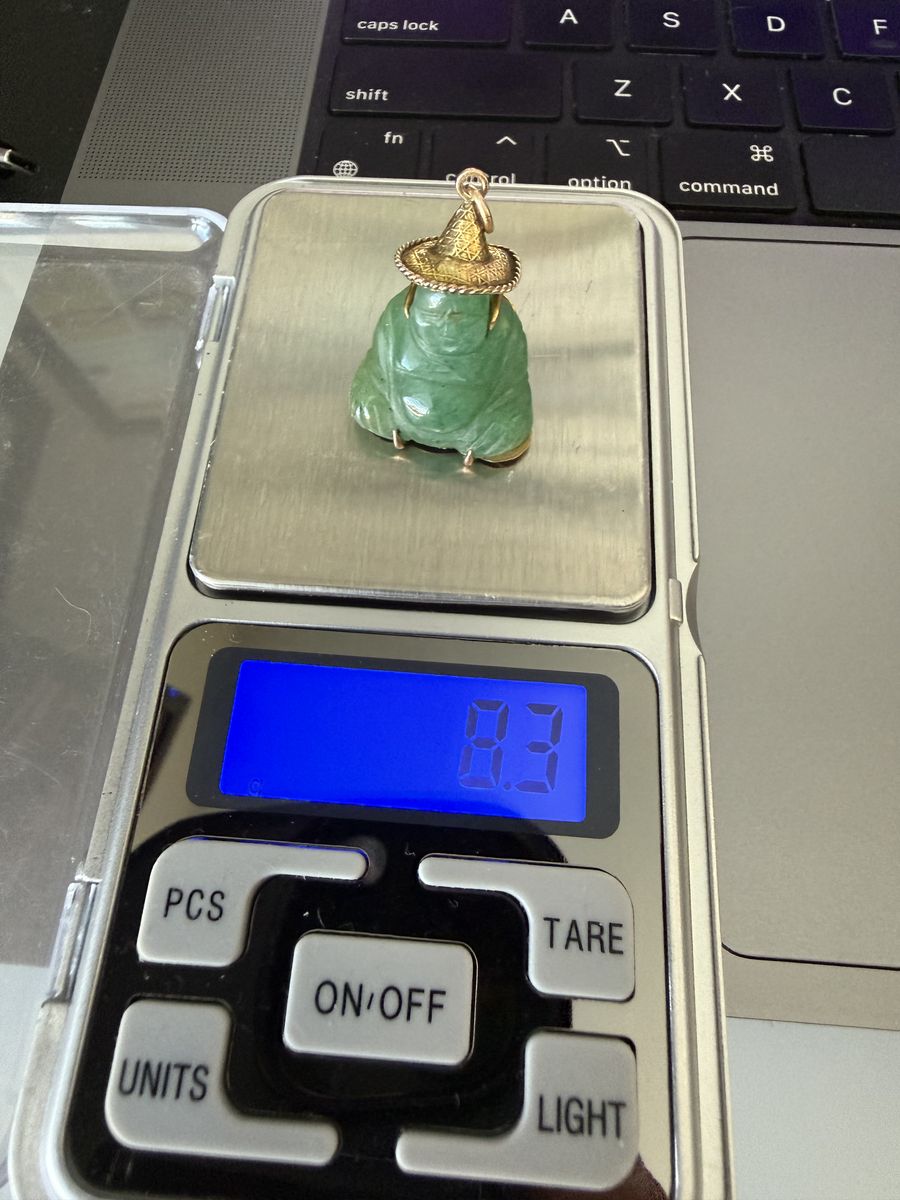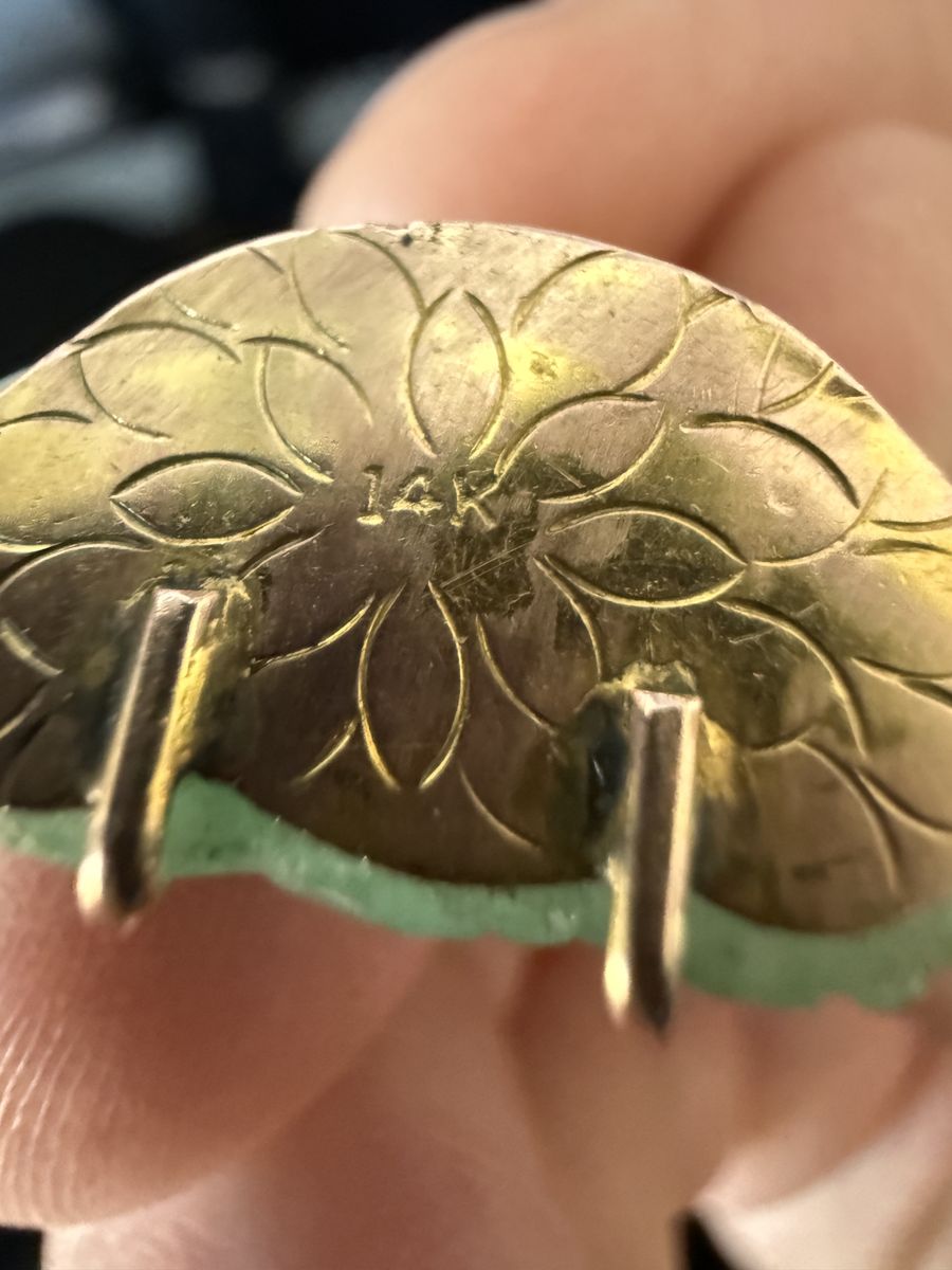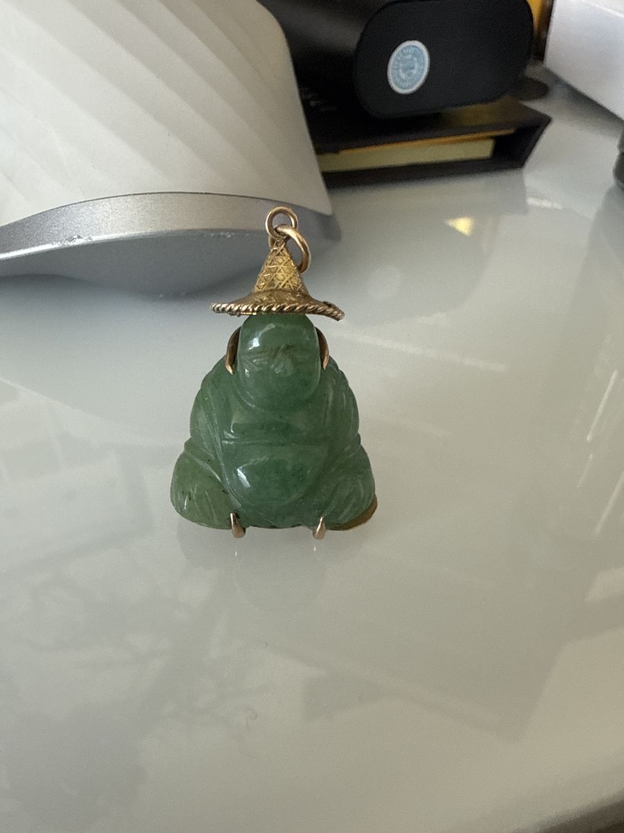 VenmoThis is a cool mid1900’s jade pendant, it has a case holding it that is 14k gold. The Chinese meaning behind the text on the back is below. 福 (Fu) means:\