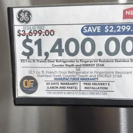 GooglePayGE French Door Refrigerator – Stainless Steel. NEW, Save +800