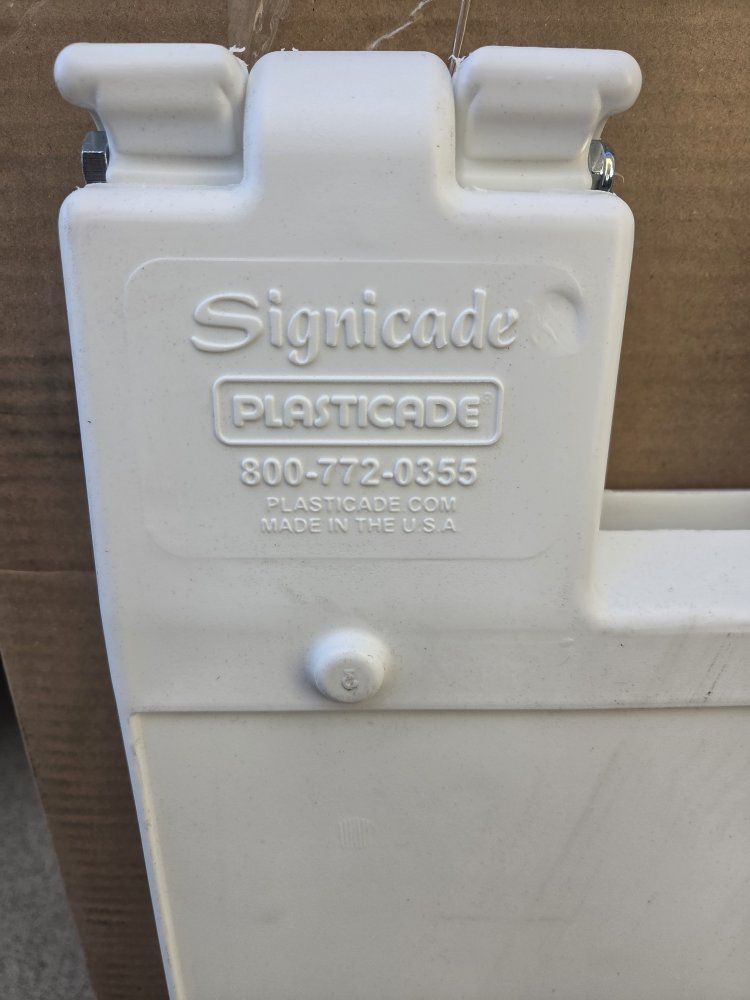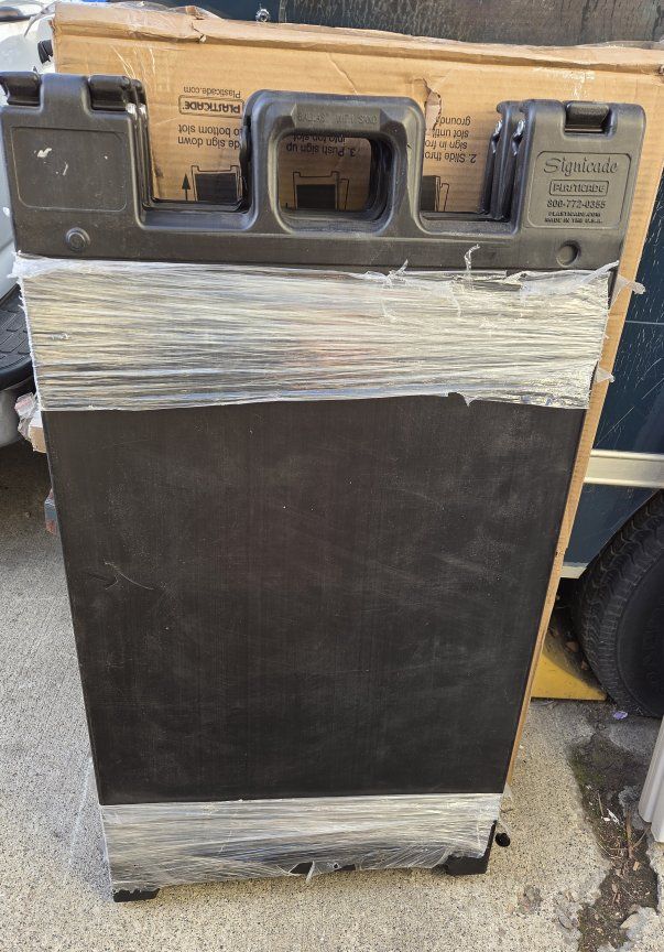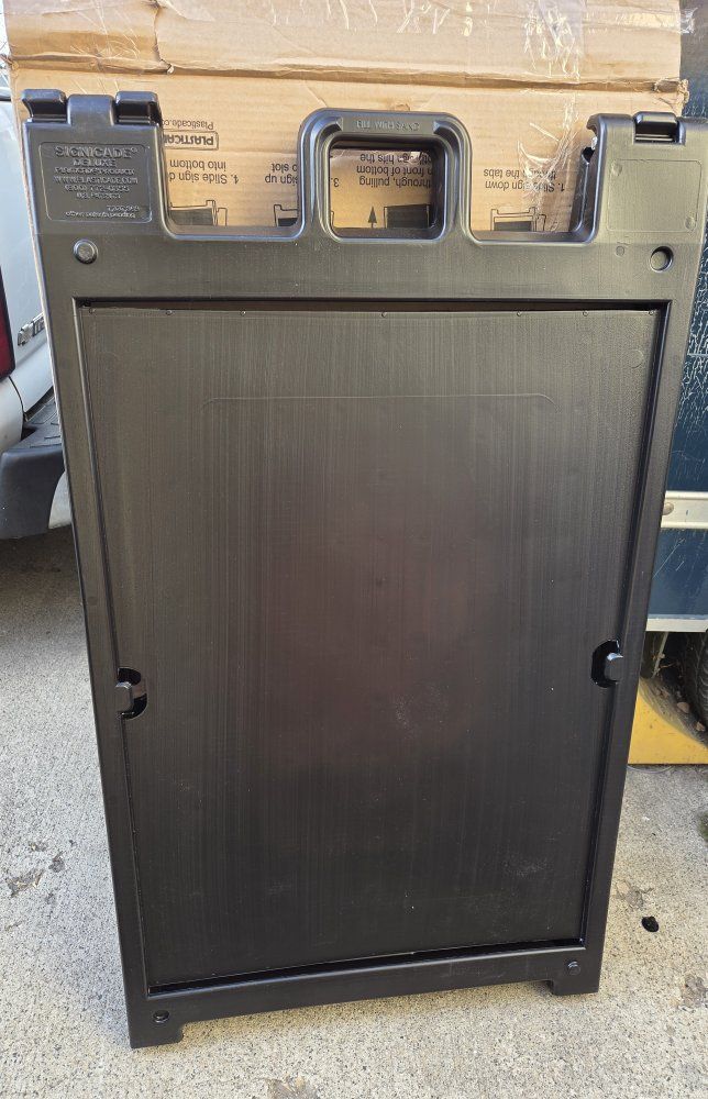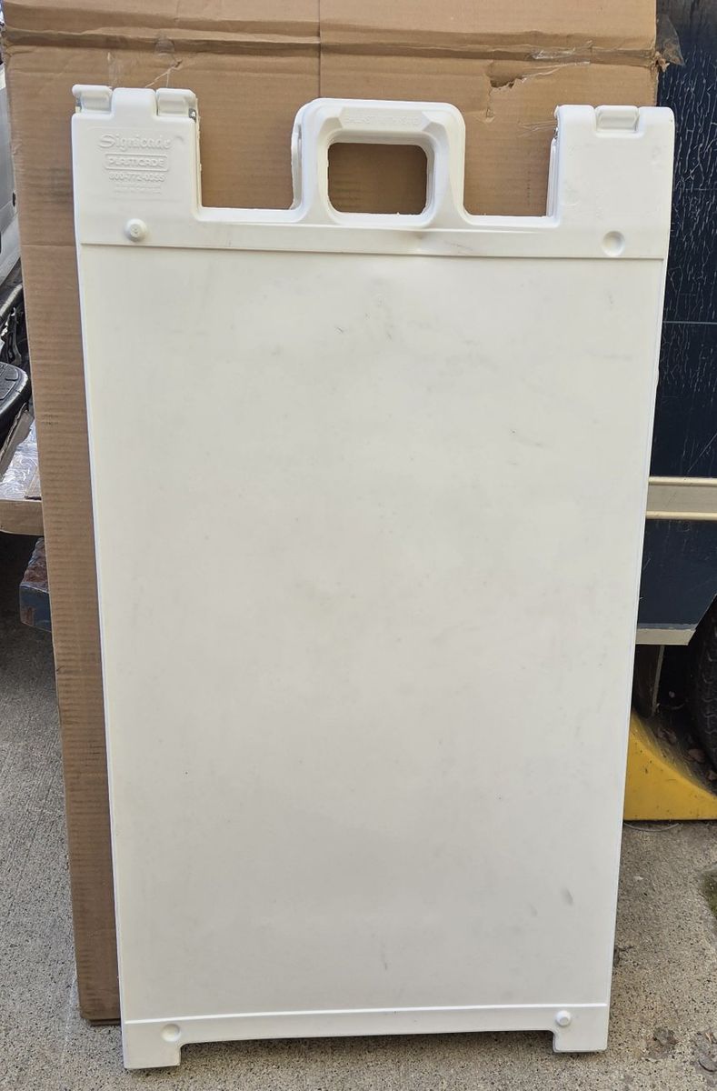 Venmosignicade plasticade portable folding double sided sign stand, sign holder, material plastic, white 45" H×24-1/2" W, used, $ 50 black #140-bk 46"H×27"W, new, $80 black 45"H×24-1/2"W , new, $80 send me a message if you are interested I'm located in West Valley City