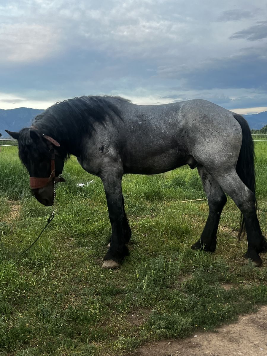 VenmoStanding at stud: Deluxe, a beautiful Blue Roan Brabant stallion. Deluxe has excellent conformation, strong bone structure, and consistently throws lots of color in his colts.