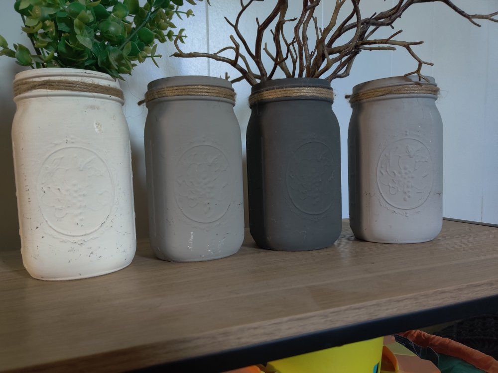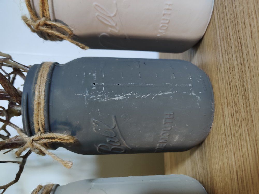 PayPalI painted these with chalk paint and there are some scratches of the paint (please see photos). They do have colored glass pebbles in them to use as vases. Let me know if you have questions, thanks for looking!