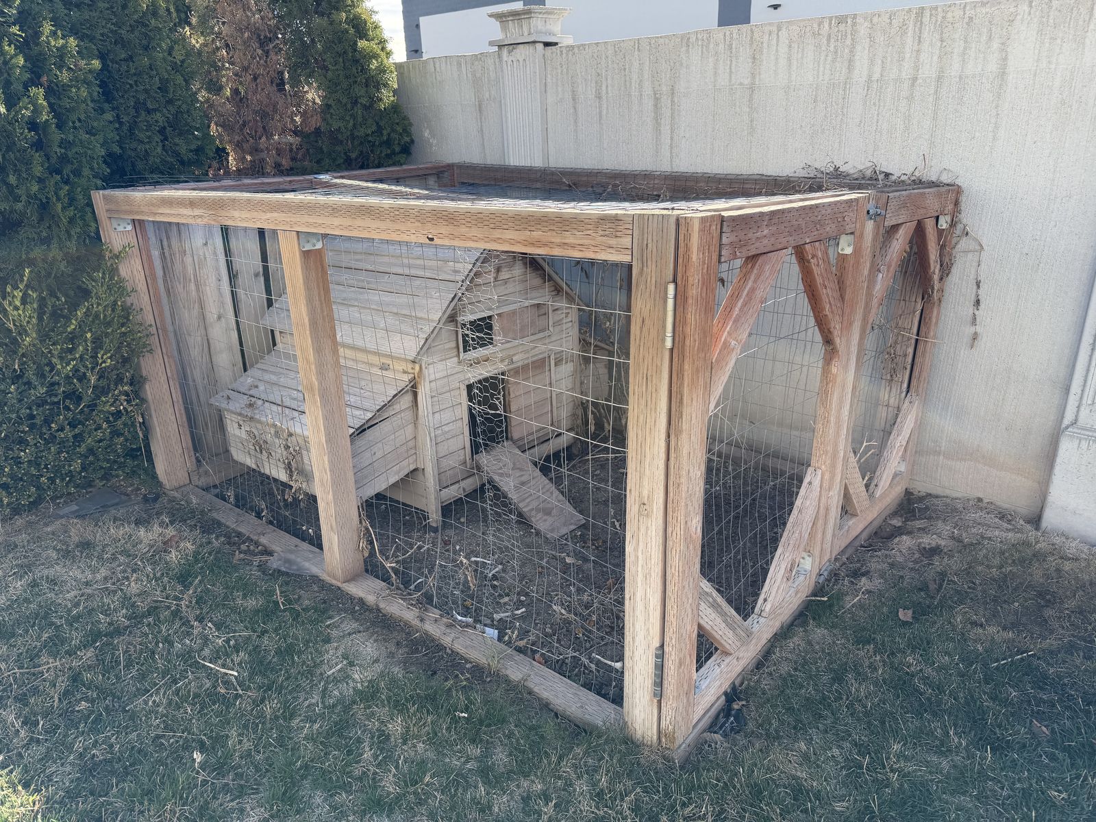VenmoGood bones, but needs some love. Served us well for many years. Probably $750 in wood and the coop, was not cheap to start. Hoping someone can have a lovely backyard chicken set up without spending the same money I did! With some brackets, screws, and a few pieces of wood, it would be great. It’s technically fine now, just not meant to move around.