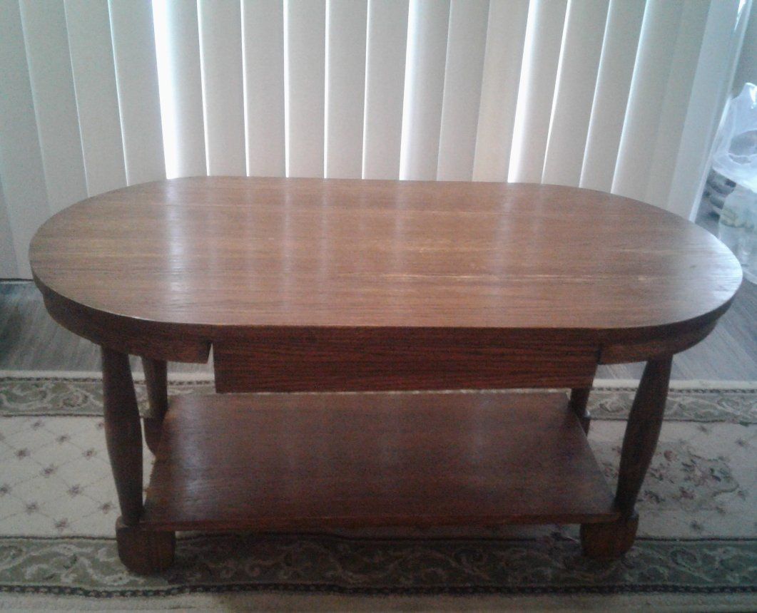 Vintage Wood Coffee Table with Drawer, that opens on both sides In good condition. measures 32 1/2" x 18" and 17" tall $90