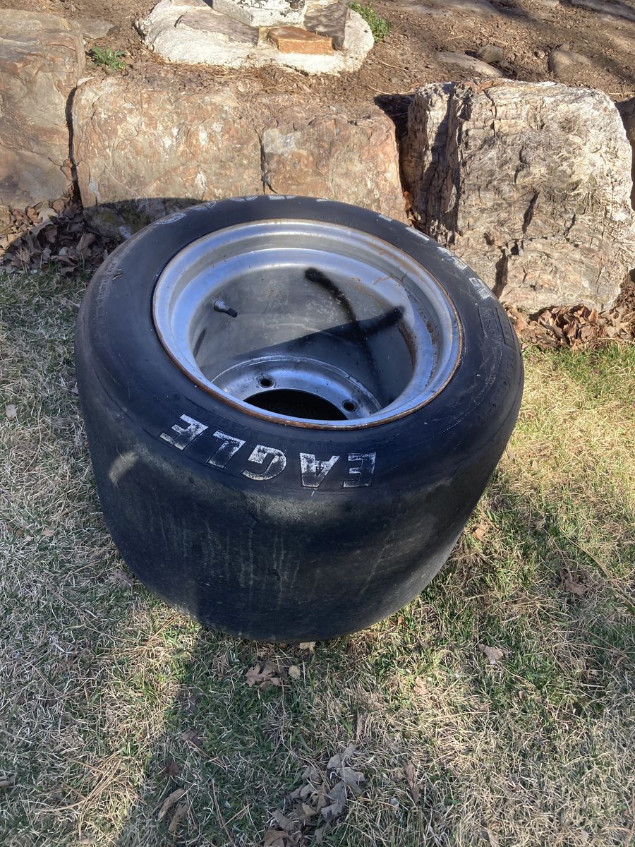 VenmoI have a vintage super modified large, five lug rim 16 inches wide 15 inches tall with an old good eagle circle track Tire. If you need the rim or you want to use it for an end table it’s great for a man cave tire size is 25 x 13 x 15. I have several sizes of glass and shapes if you’d like to choose from to make an end table.
