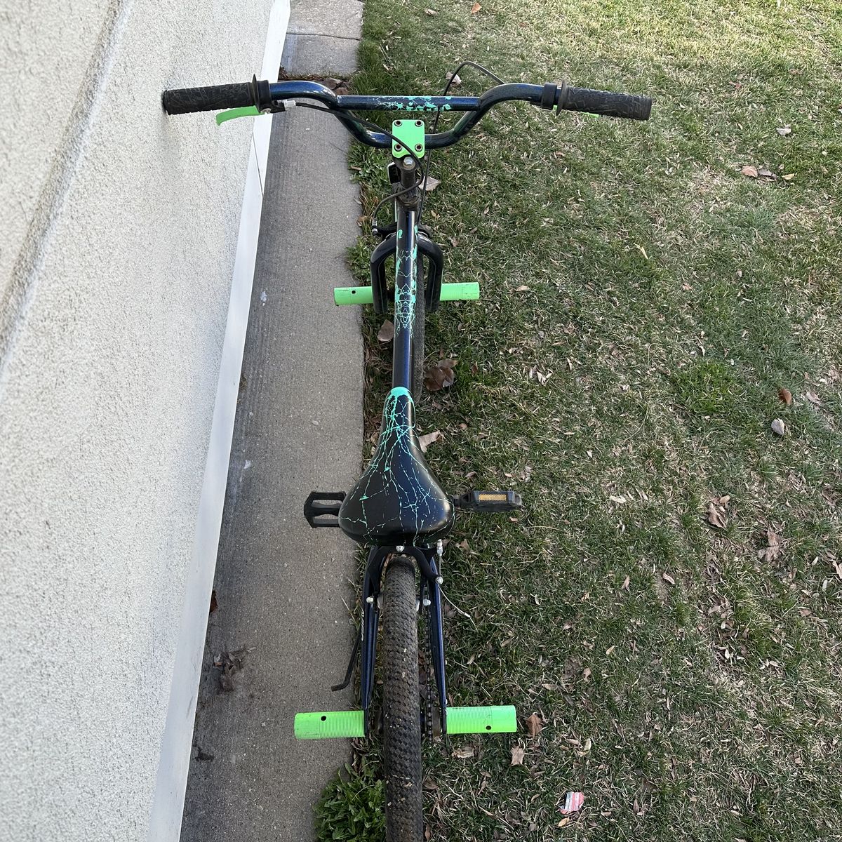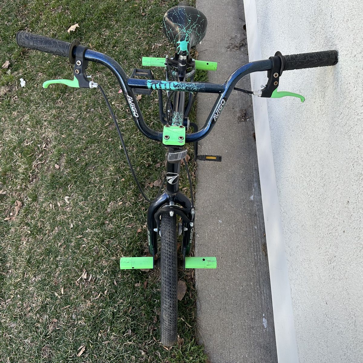 Works great. BMX style bike with 20” wheels, single speed, and rim brakes.