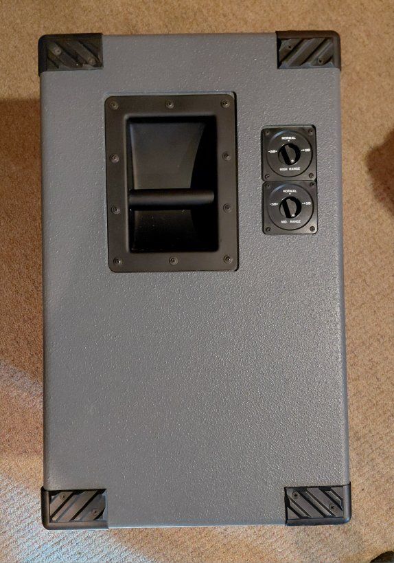 VenmoDr Bass model 2460 Bass cabinet with 2 12" speakers, a midrange speaker, and a tweeter.