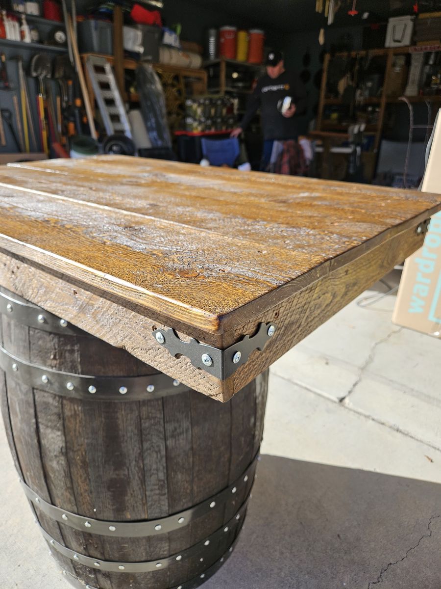 VenmoVintage whisky barrel with a table top. It is perfect for a wedding and for refreshments for BQ.