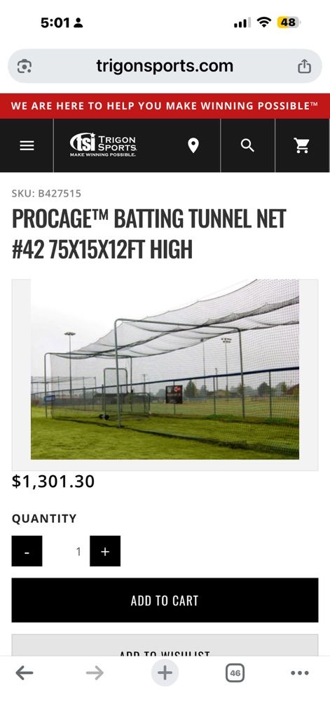 This net is ideal for indoor or outdoor use and comes backed by a 5-year warranty for added peace of mind. Whether you’re searching for batting cage netting for sale or need a reliable upgrade to a 75 x 12 tunnel setup, this net delivers on strength and simplicity. A great fit for schools, training facilities, or backyard cages built to last. 75'x15'x12
