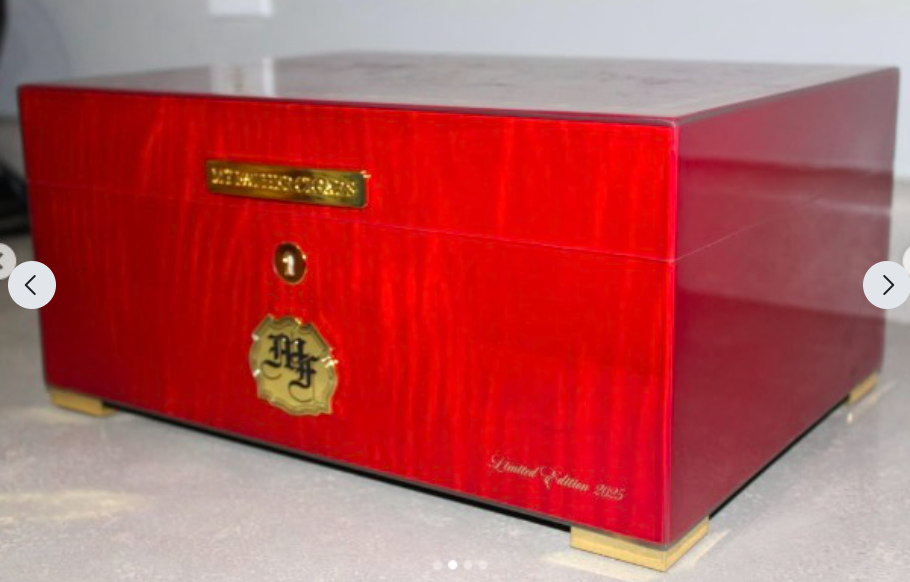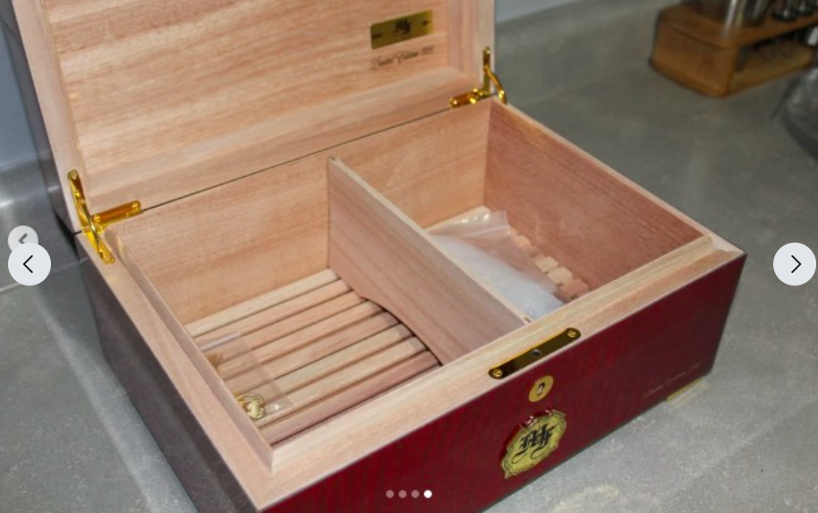 VenmoBrand new never used My Father cigar humidor 2025 special edition only 1000 made, comes with hydrometer, a key to lock it, and two humidifiers that you charge with distilled water, Brand new never been used or even seasoned absolutely perfect condition. Comes with a brand new My Father hat. Any questions feel free to ask.