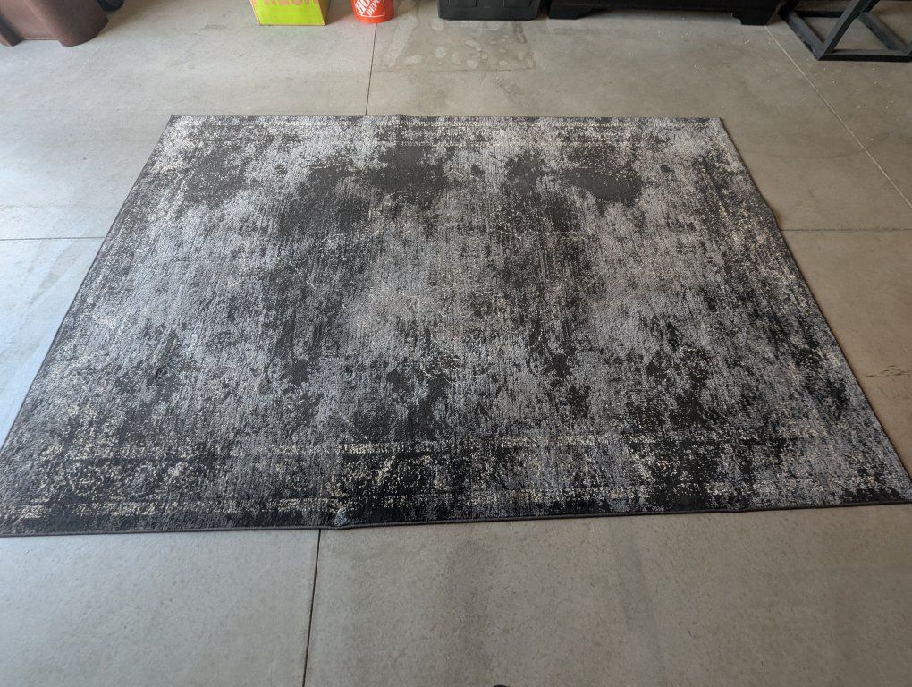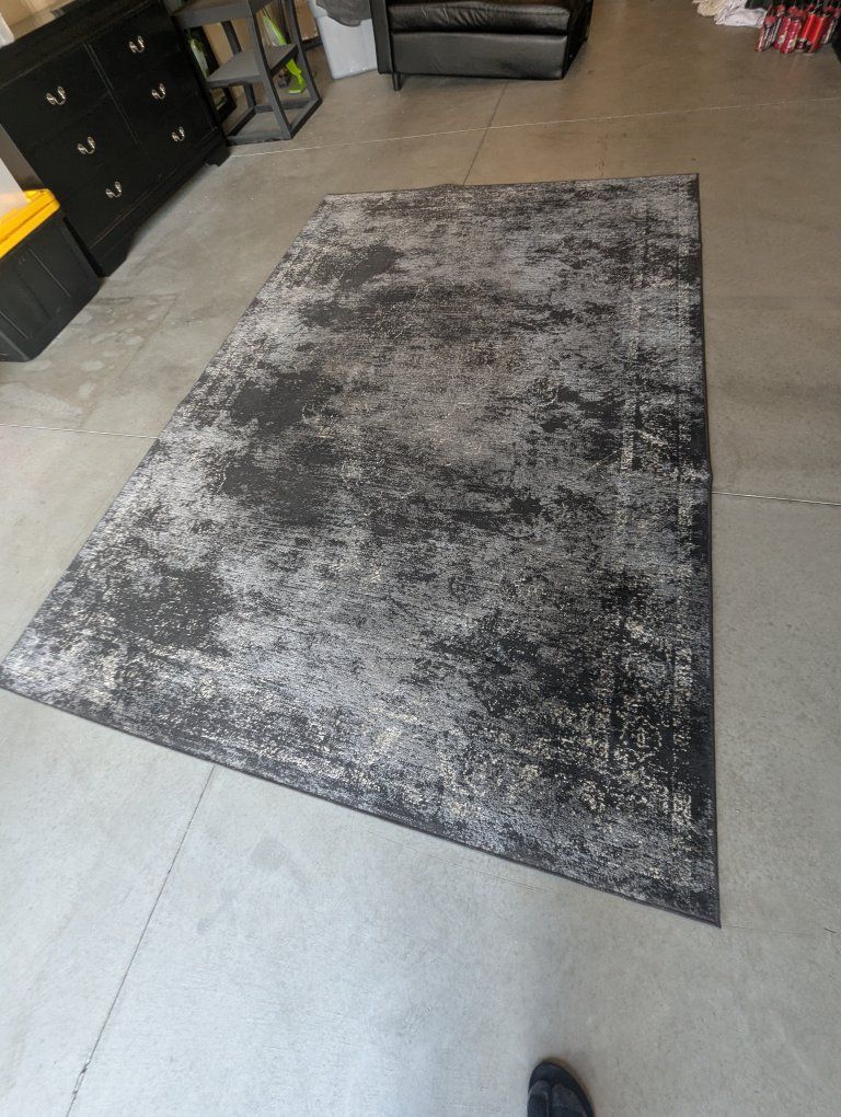 Great condition grey area rug. Normal wear. Has slight imprint from the legs of my couch. Nothing wrong with it. No stains. Clean.