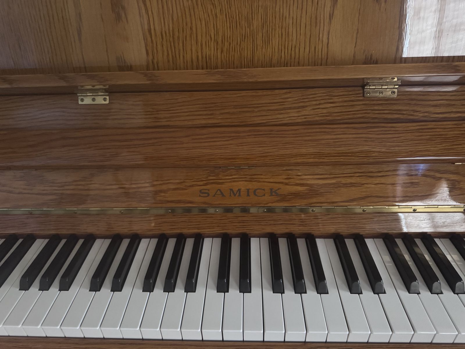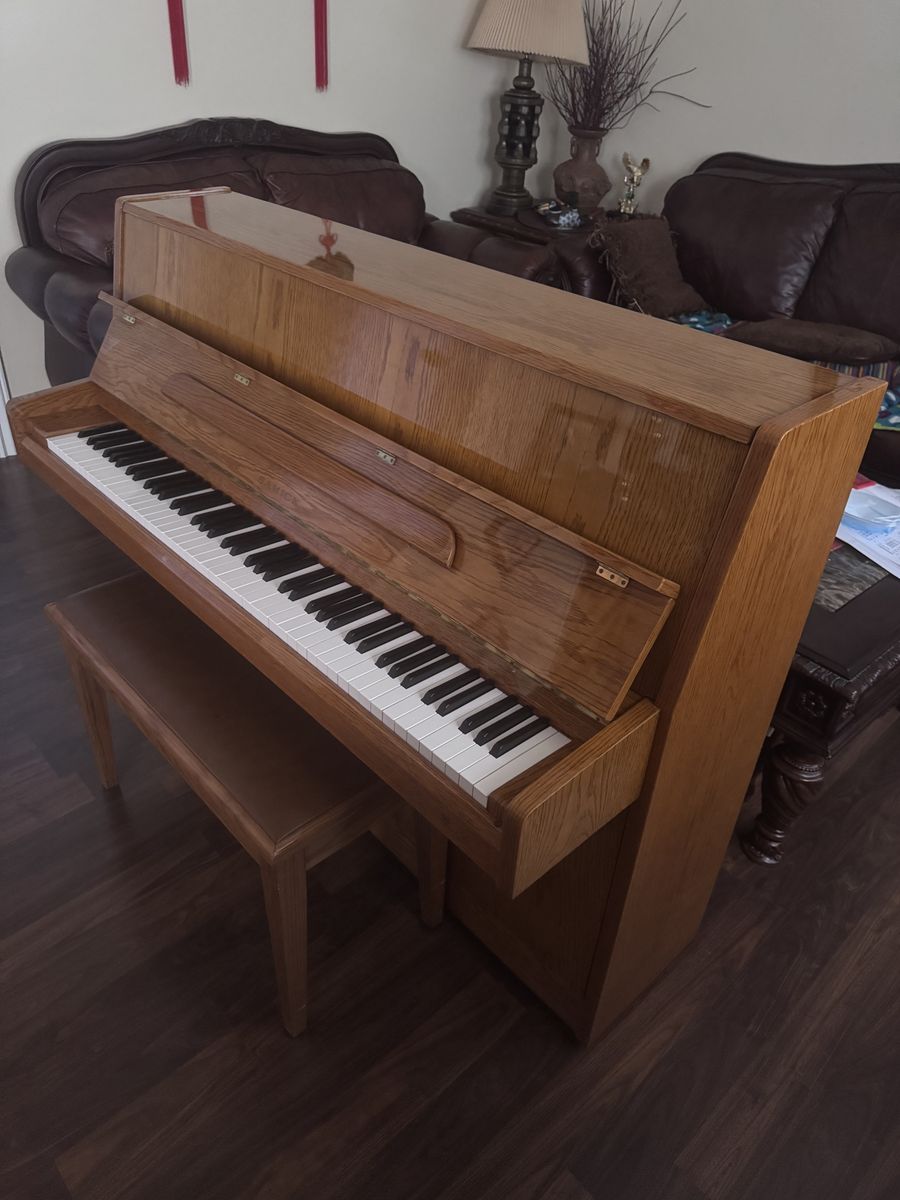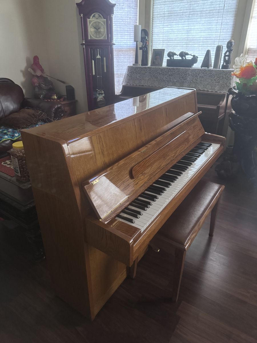 VenmoBeautiful SAMICK upright piano. Has classic wood finish. Comes with matching bench. All keys and pedals are working great, deep cleaned and tuned. We do free delivery and free home tuning services. 57.5 inches L, 22 inches W, 42.5 inches H