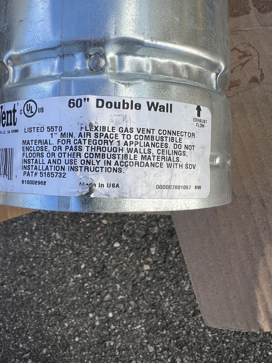 GooglePayDuraVent DuraConnect II B-Vent 60 Flexible Double-Wall Gas Vent Connector $100 each (I have 5).
