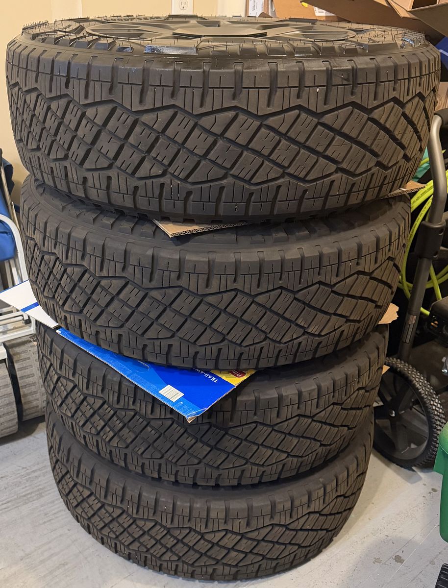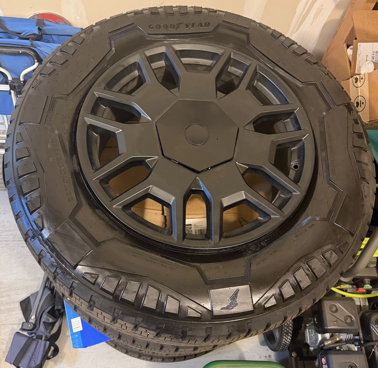 • OEM Cybertruck wheels • Goodyear Wrangler Territory RT (All-Terrain) • Near new condition • No curb rash, no dings • Excellent tread • TPMS sensors NOT included