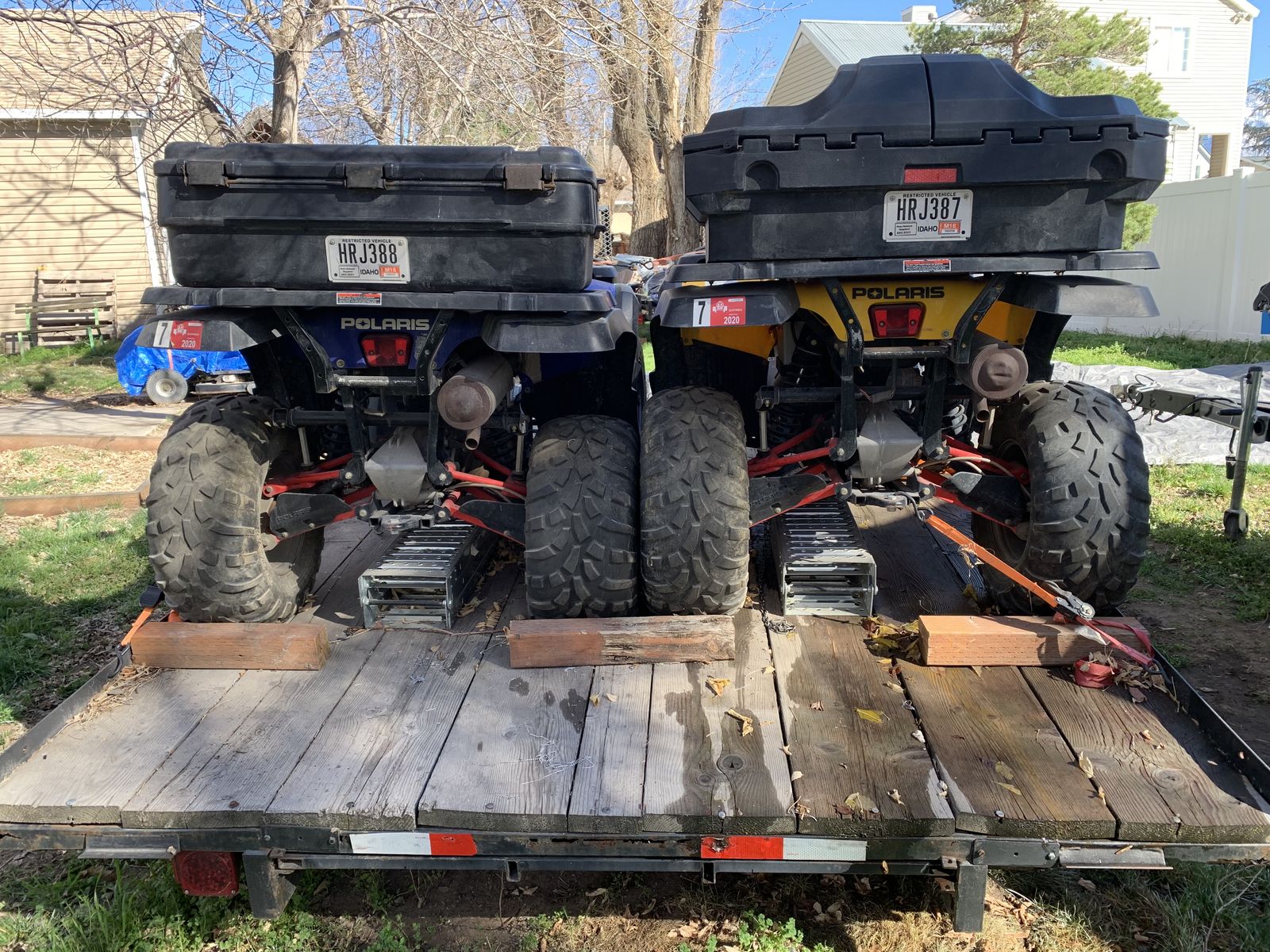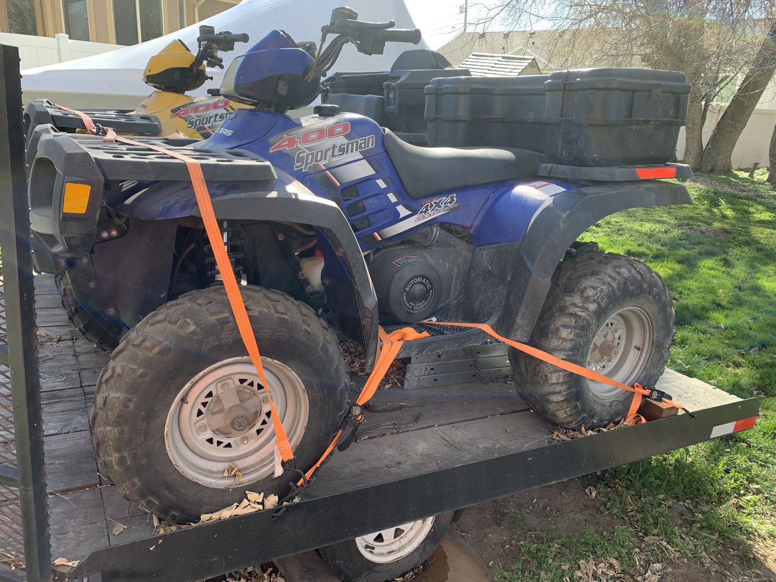 ApplePay2004 Polaris Sportsman 400’s $2500/ea. OR $4000 for both. Trailer can be included for $600. Clean titles. They may need new tires. Working this week on getting them running! They sat outside for the last year.. they were garage kept prior to sitting out, so they are in great shape. New batteries, spark plugs, filters.