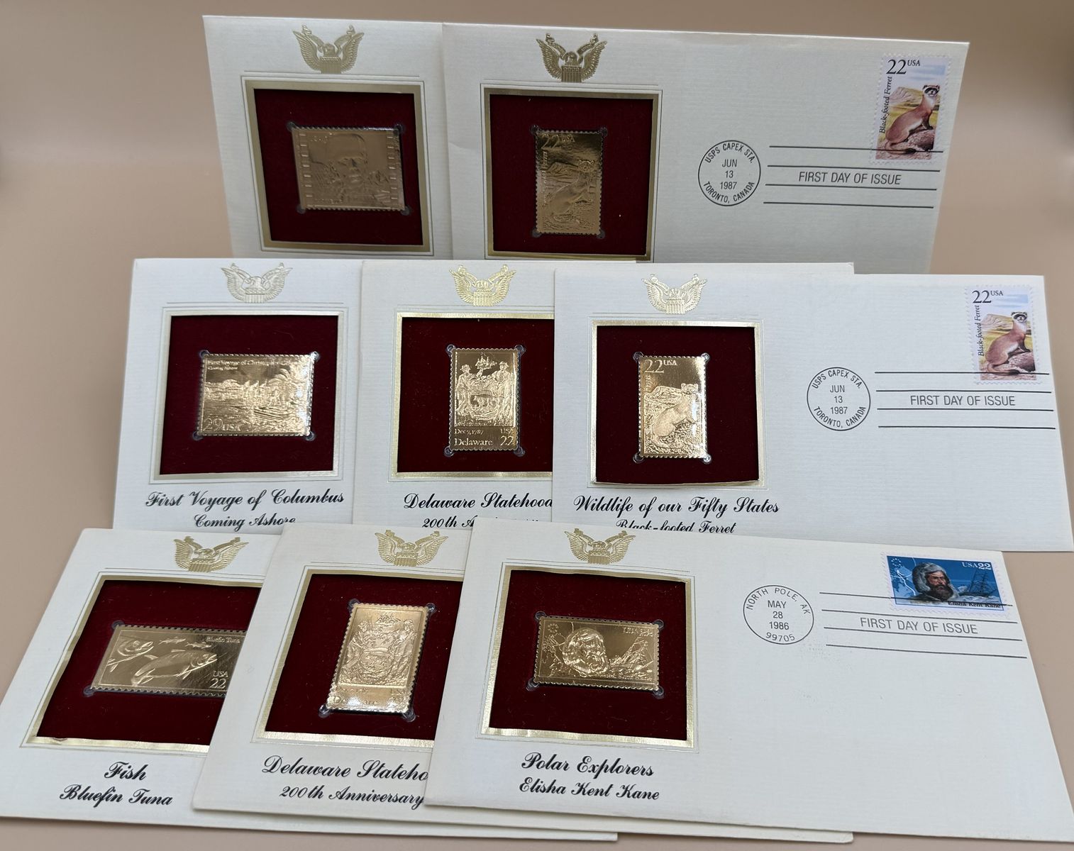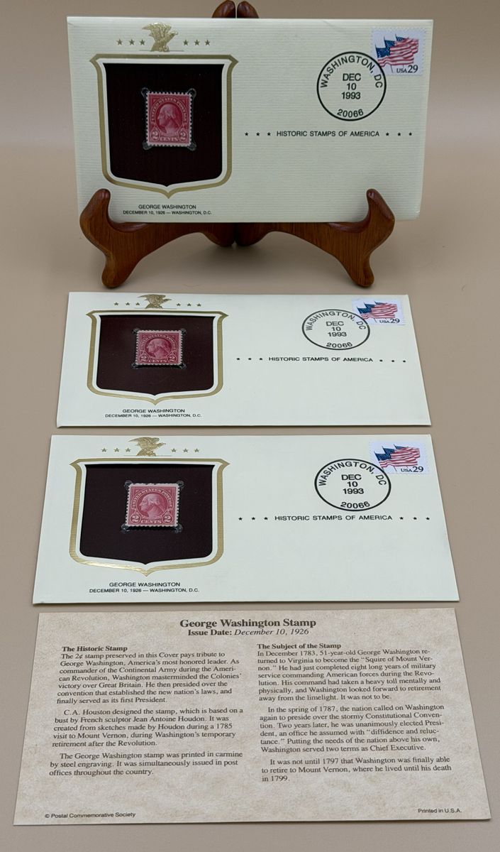 8 - Golden replicas of United States stamps and HIstorical George Washington stamps.