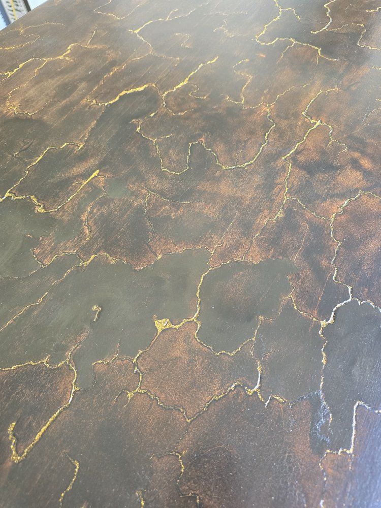 The top (64" x 18") features a custom gold epoxy inlay and turns this crate into a legitimate statement piece of furniture. It works great as a console table, entryway piece, or behind a couch — and every guest who sees it asks about it.