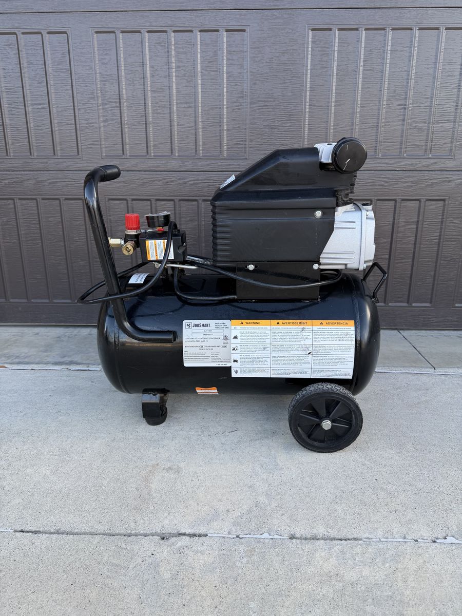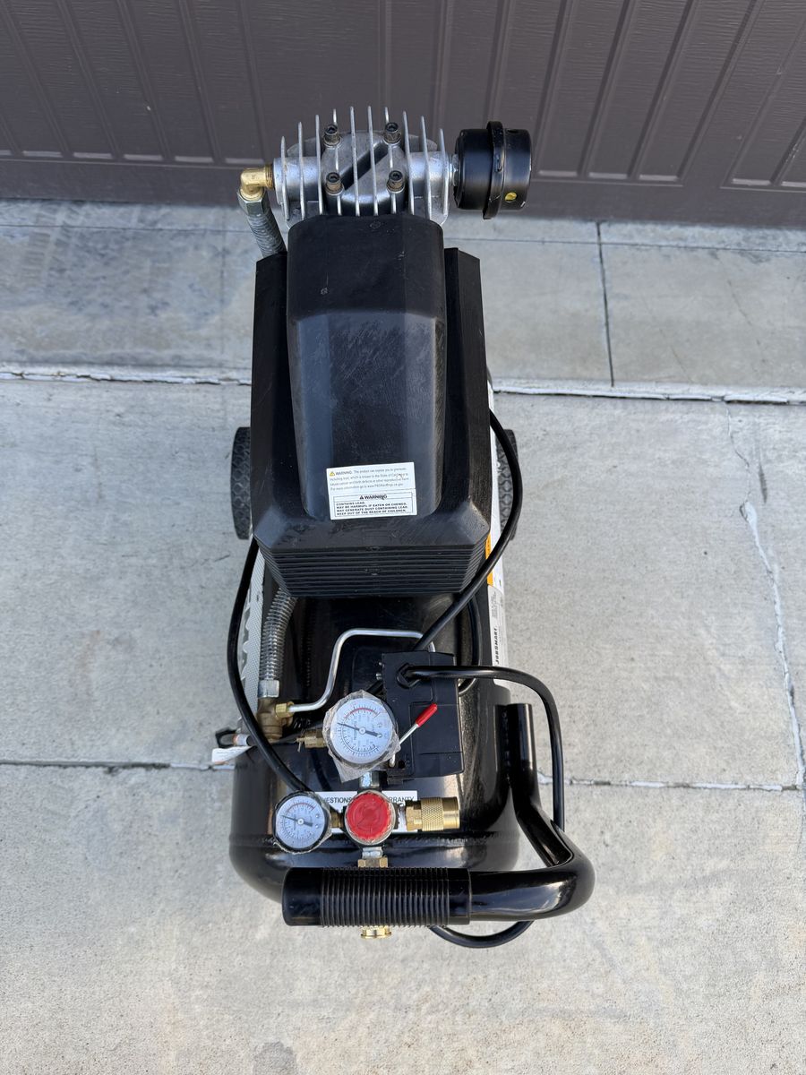 VenmoUsed maybe a handful of times. Works perfectly and doesn’t leak or bleed off air. The gauges still have plastic on them from new. You can run two air hoses at a time. It’s so easy to wheel around to where you need it. I purchased it a few months ago for $225. I’m moving and can’t take it with me. Text is best Jeremy 891-369-2012