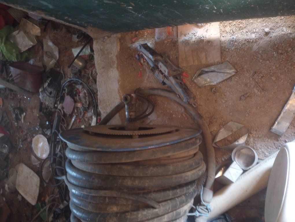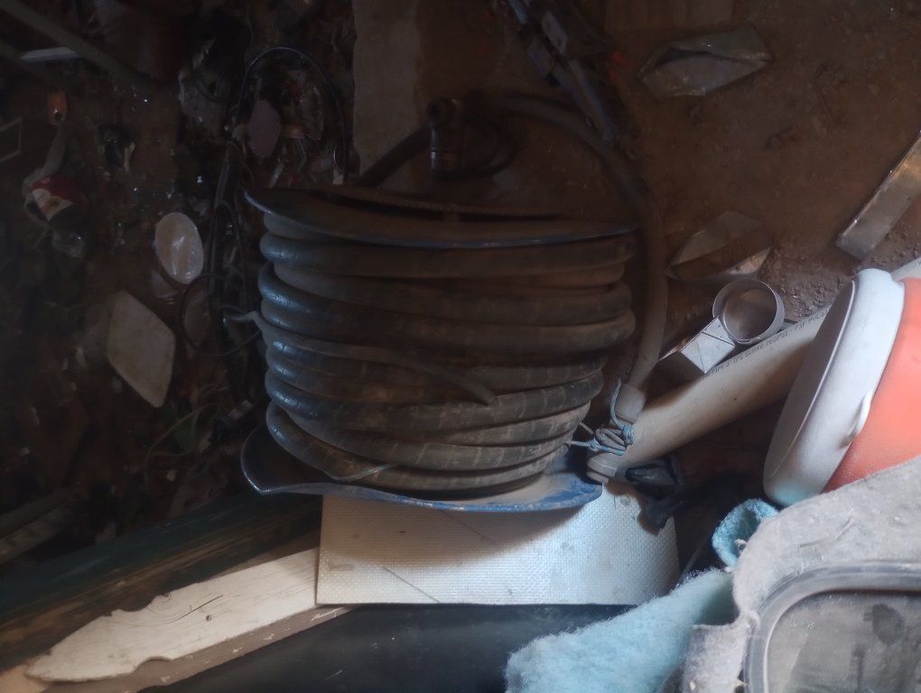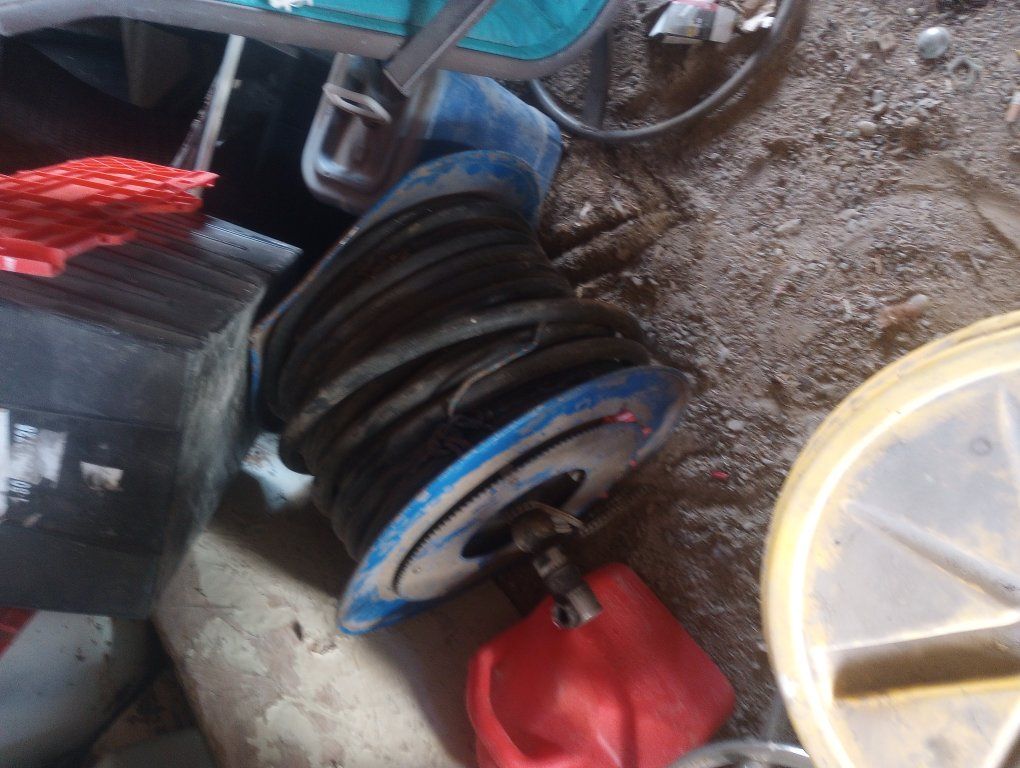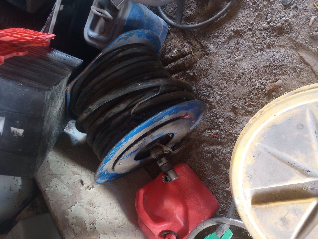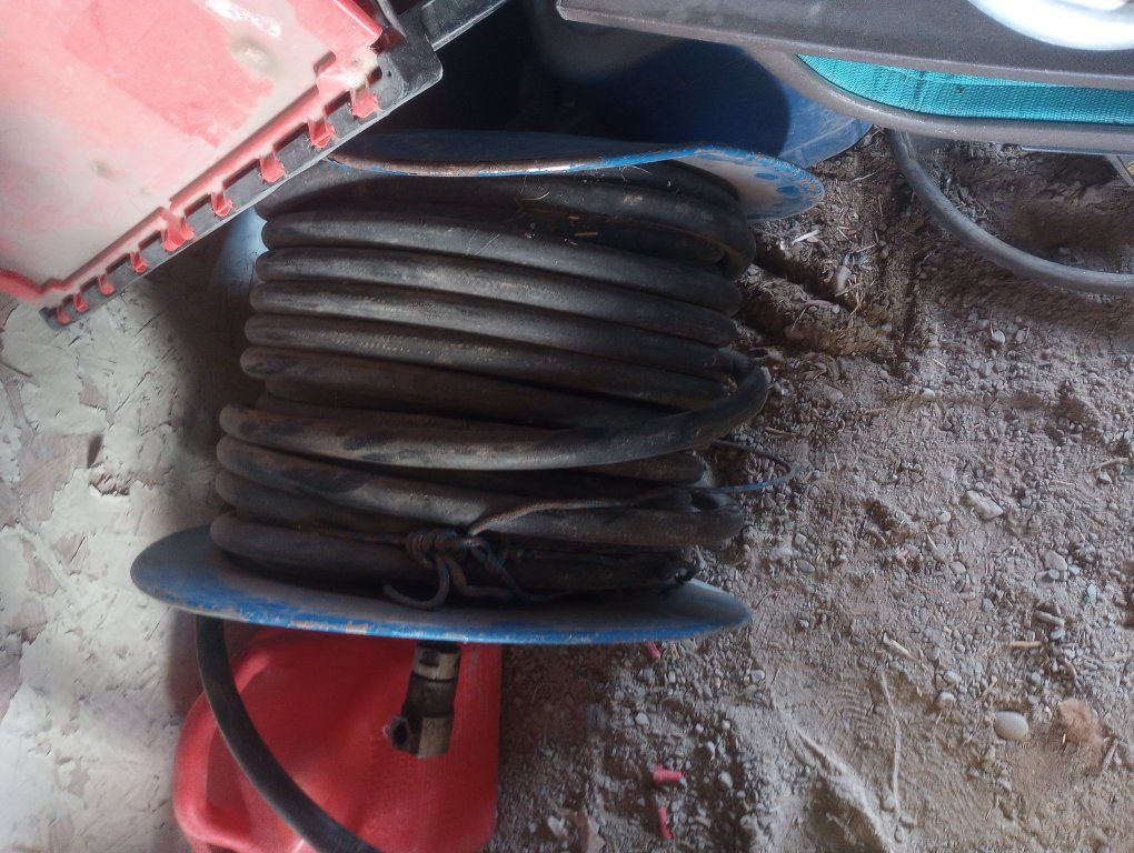 these are some high pressure reinforced hydrolic hoses I have two rolls and they are at least 100 feet long if not two or more ! they have the same kind of ends as bobcat fittings .like the jackhammer hoses or whatever they are they have a sprocket for chain driven rolling system and they are very heavy duty
