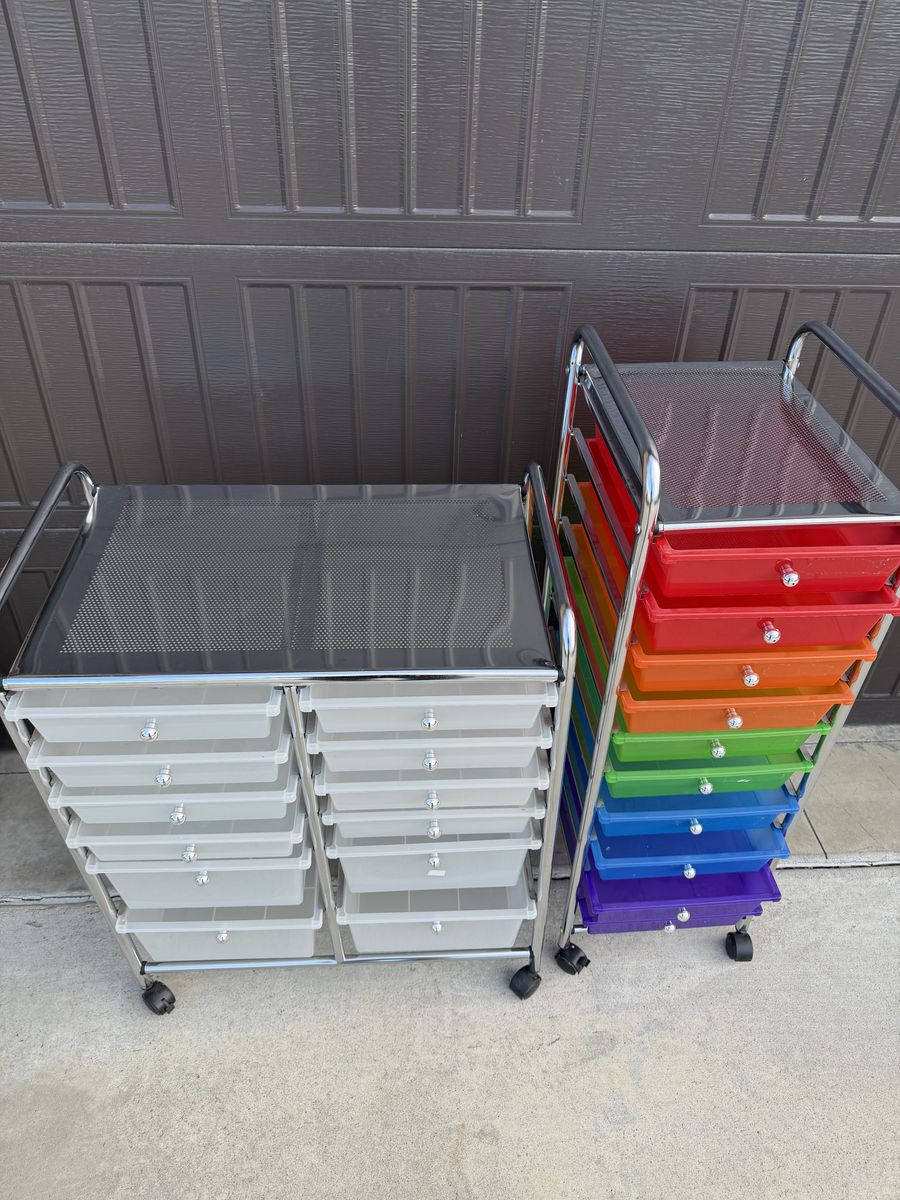 VenmoI have these 2 storage carts we’ve used for crafting and sewing storage. They both have metal frames and are on wheels for easy moving and the wheels lock if needed. All plastic drawers are in perfect shape without cracks and slide nicely. Asking $25 each or $45 for both. Text is best Jeremy 801-369-2012