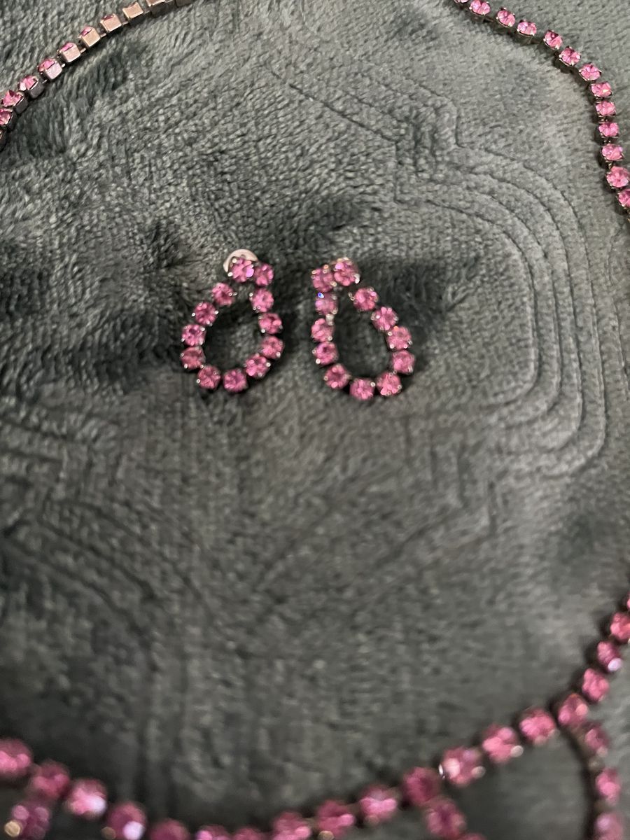 VenmoThink Pink! This is from the late 1950's. The pink color is the most collected. Which makes it harder to come by. The earrings are pierced earrings. Selling for a parent. Sold only as a set.