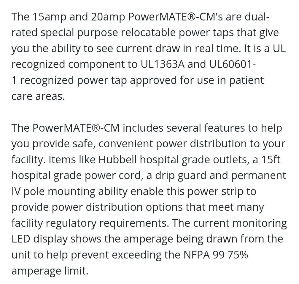 VenmoBrand new PowerMate CM 20A is a relocatable power tap that give you the ability to see current draw in real time. It is a UL recognized component to UL1363A and UL60601-1 recognized power tap approved for use in patient care settings. All the details are in the pictures. Retails for over $300. Asking $215. Text if interested 801-903-8337