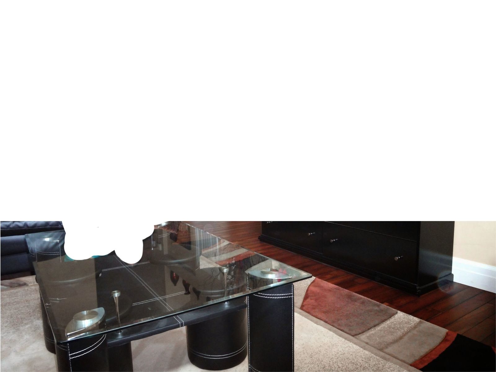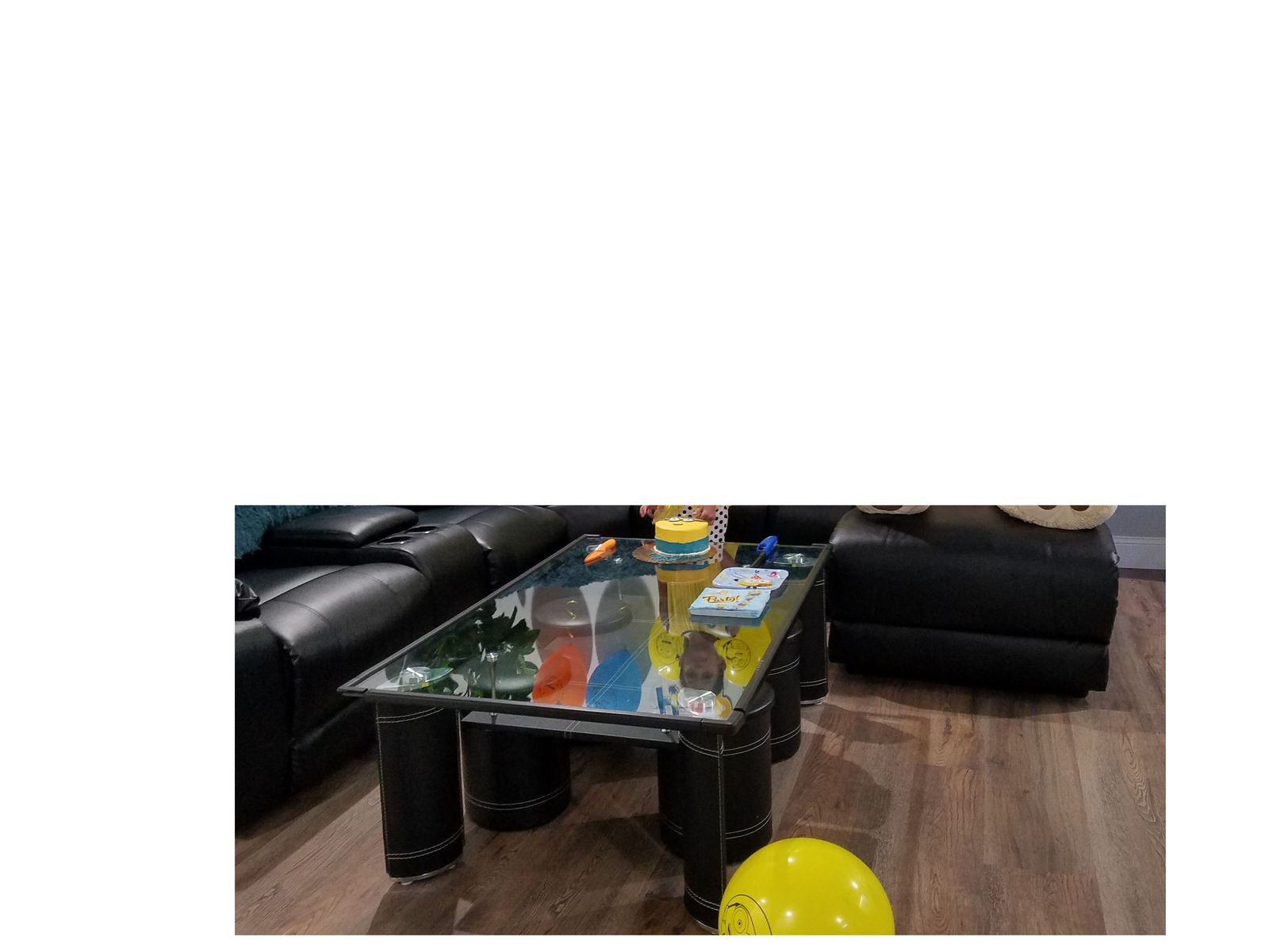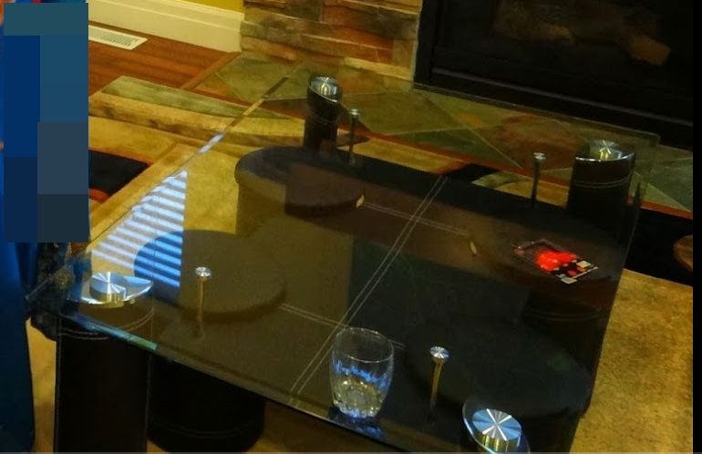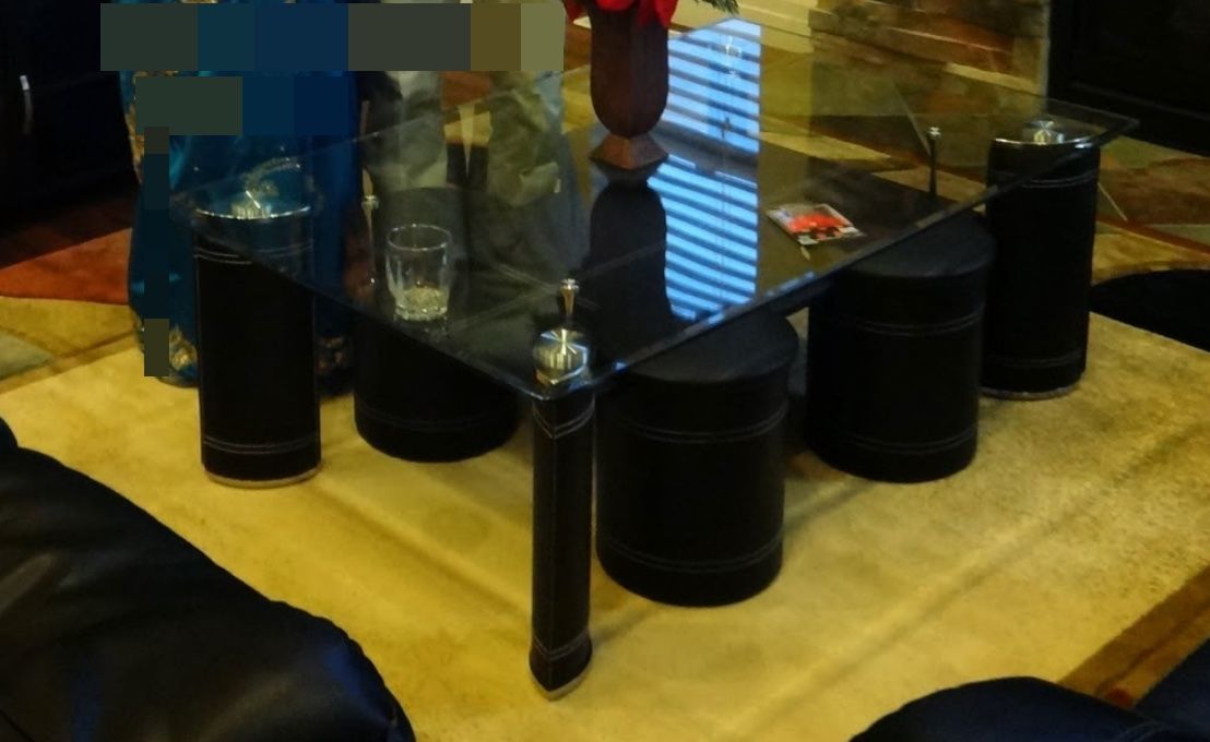 ZelleModern Glass Coffee Table with 4 Barstools – $90