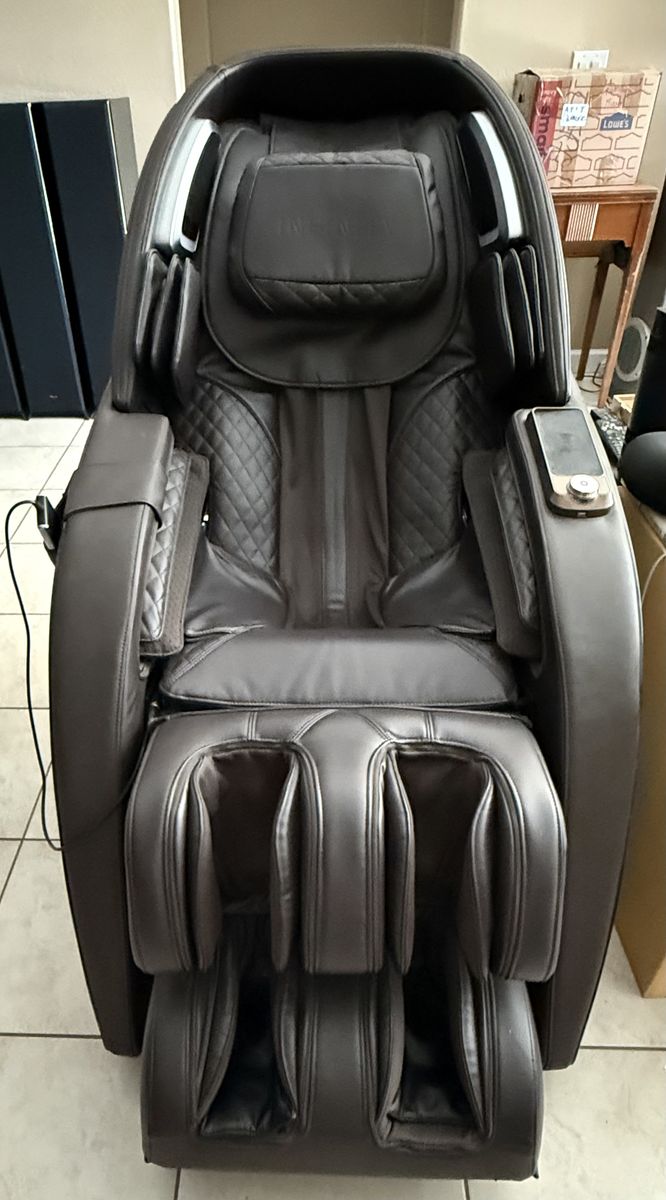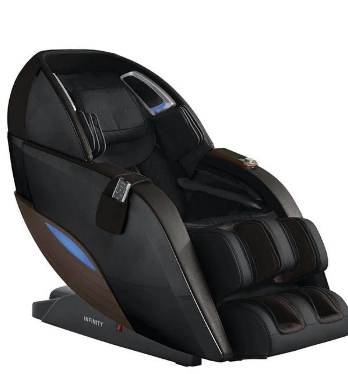 Specifications (Approximate, Based on Manufacturer Details) • Chair weight: ~304 lbs • Dimensions (upright): ~67” L x 49” H x 35” W • Dimensions (reclined): ~73” L x 37” H • Max user weight: 300 lbs • Recommended user height: 5’2” to 6’4” (62–76 inches) • Available colors: Black/Black, Dark Brown/Brown, Gold/Tan Pricing and Availability It typically retails around $12,999 (as listed on the official Infinity site), though some retailers offer discounts (e.g., $2,500 off promotions noted in various listings). It’s positioned as a luxury/top-tier model in Infinity’s lineup.