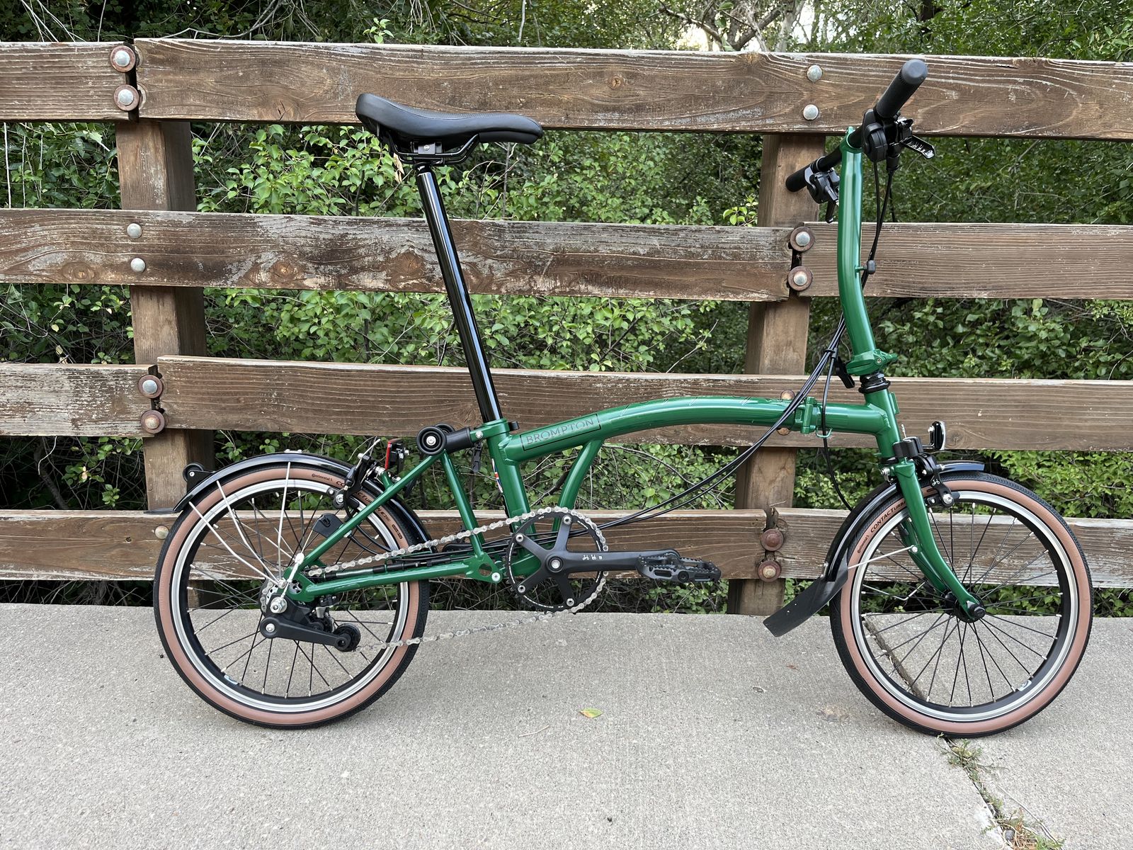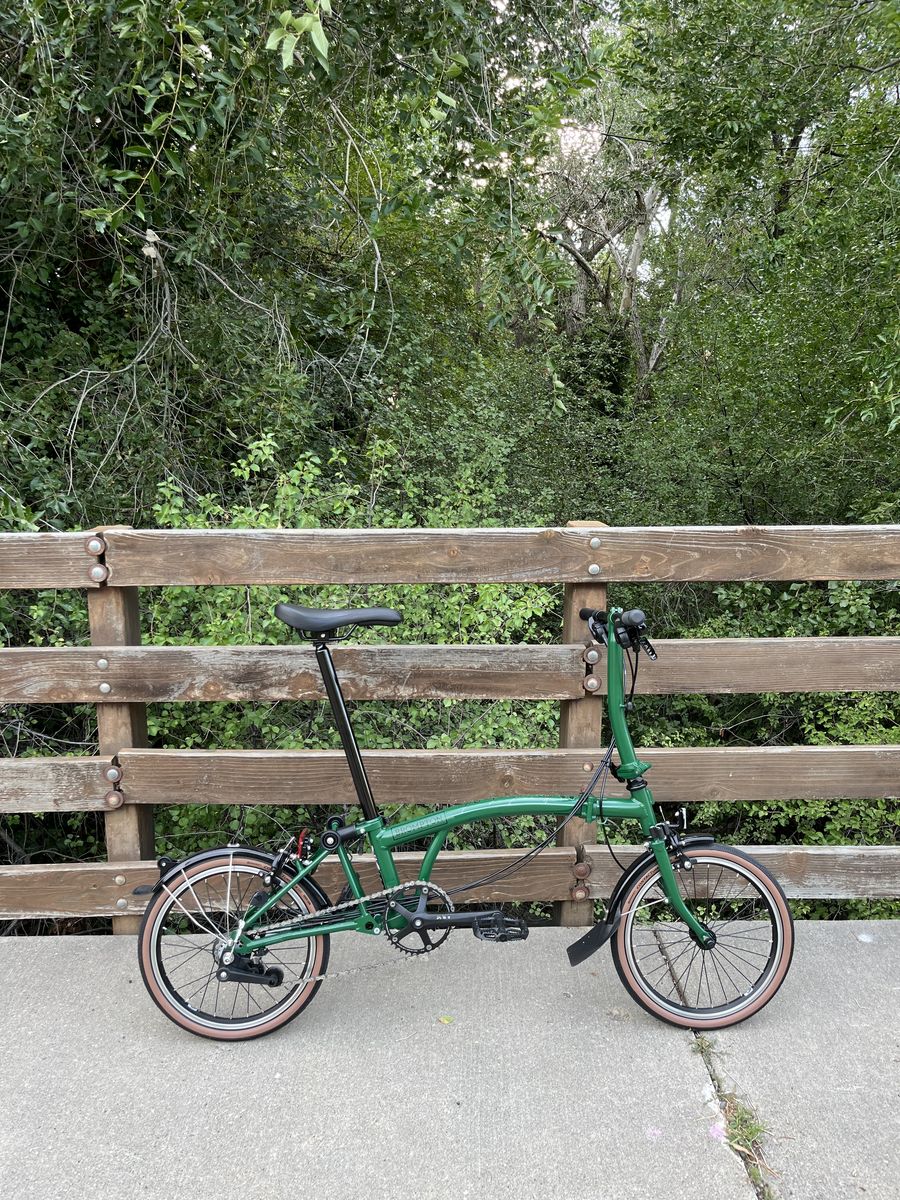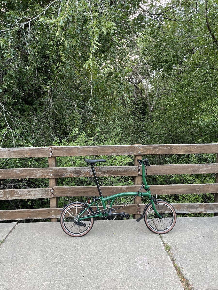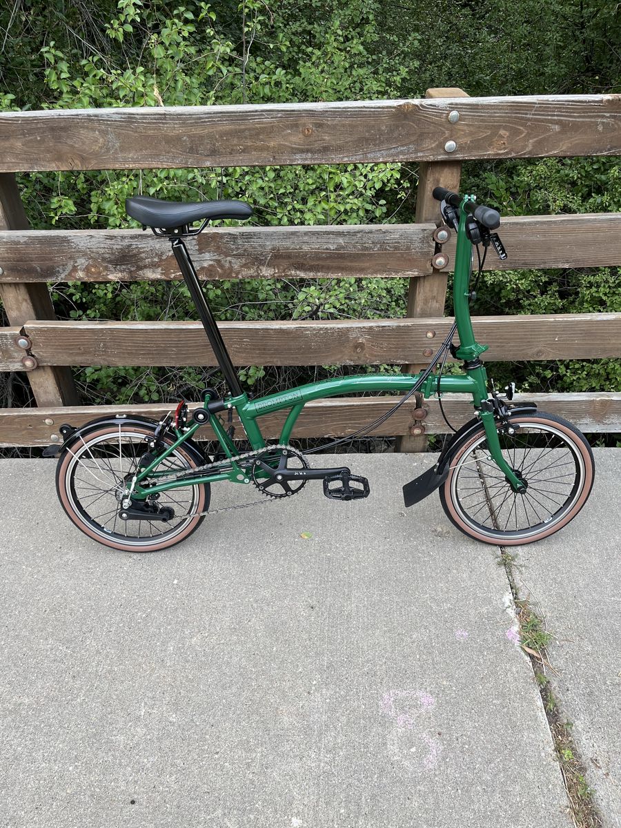 Venmo2024 Brompton 6 speed in British racing green. Upgraded tires and waxed chain. Originally was going to use to commute to work but ending up not using it very much. It’s a fun little bike and if you take the train to work or want to travel. I would keep it, but I already have too many bikes.