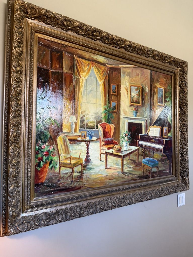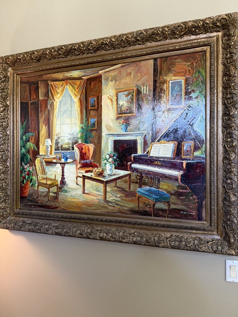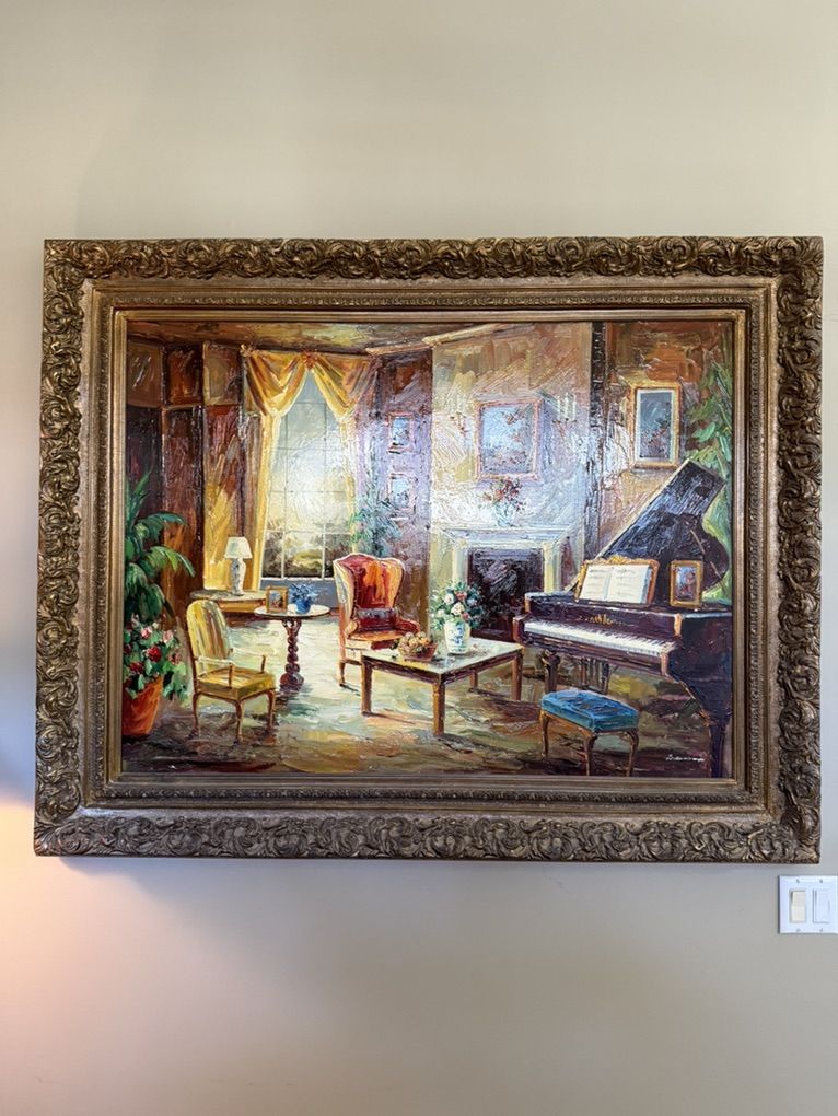 VenmoBeautiful oil, painting of piano room. The frame was hundreds of dollars more than the price I’m asking for the entire piece of art.
