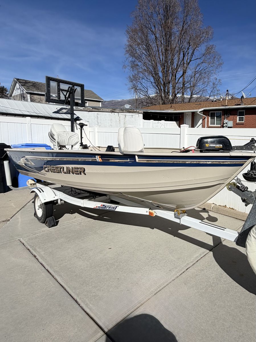 14 ft. Crestliner aluminum fishing boat for sale. Excellent condition with very low use and hours for a 1998 model. Equipped with a dependable Johnson 25 hp 2 stroke outboard motor. Well maintained and garage kept. Includes: