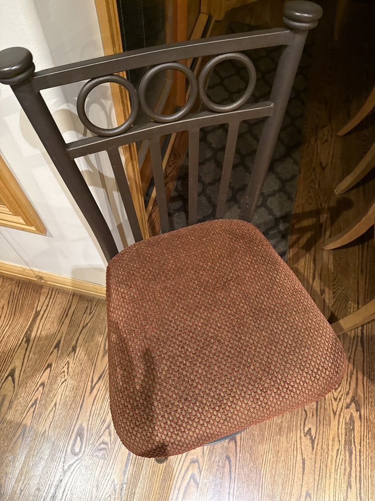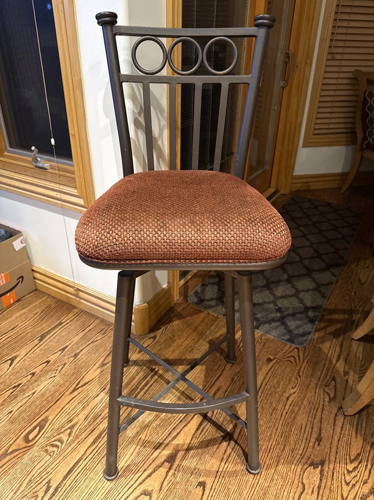 VenmoThese are like brand new with no scratches or where on them whatsoever. They can be very easily redone with new fabric. 30 inches tall to the top of the seat and 46 inches total in height. This is indestructible steel and they are beautiful. I got a new size bar in my house.